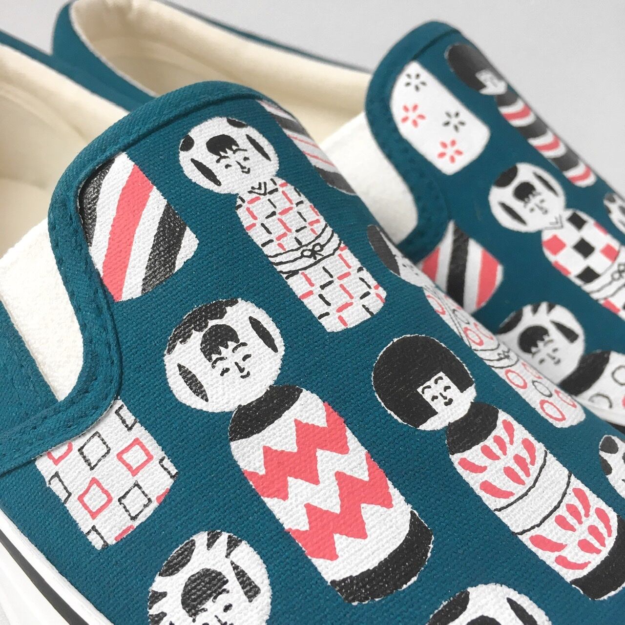 キャンバススリッポンに、手描きで『こけし柄』をペイントした【LACICO(ラシコ)】のオリジナルハンドペイント作品です。