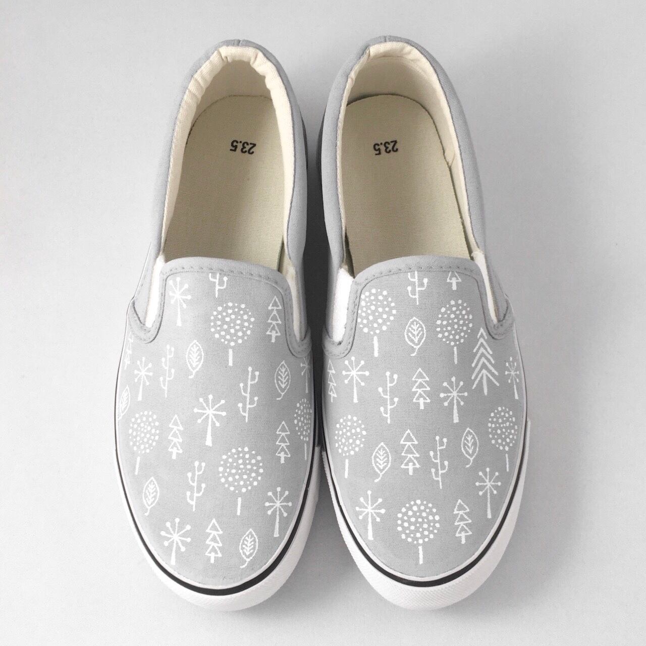 キャンバススリッポンに、手描きで『ハーブ柄』をペイントした【LACICO(ラシコ)】のオリジナルハンドペイント作品です。