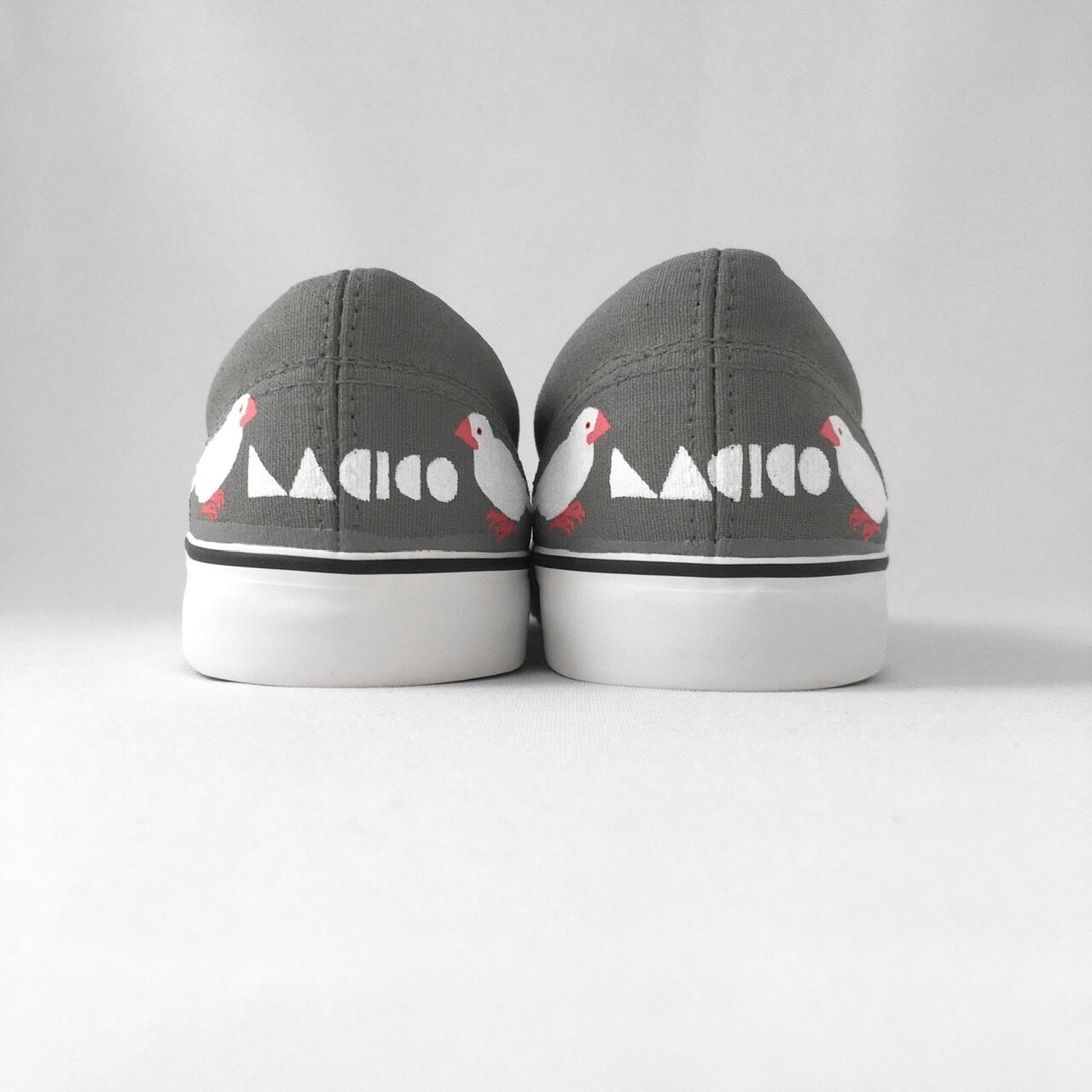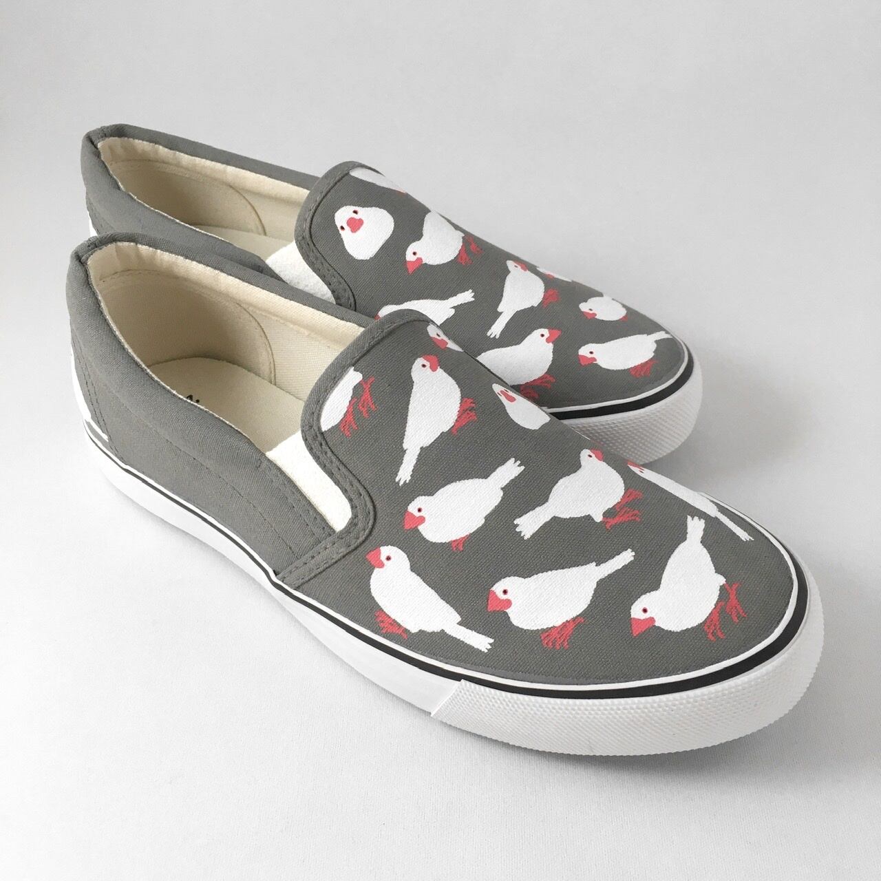 「文鳥柄」をスリッポンにハンドペイントした【LACICO(ラシコ)】のオリジナル手描き作品です。