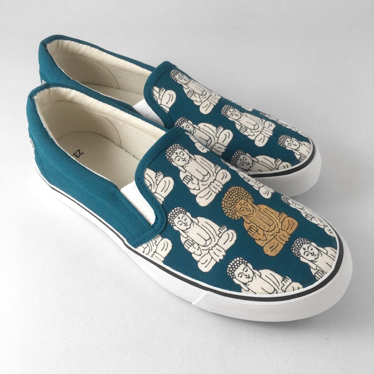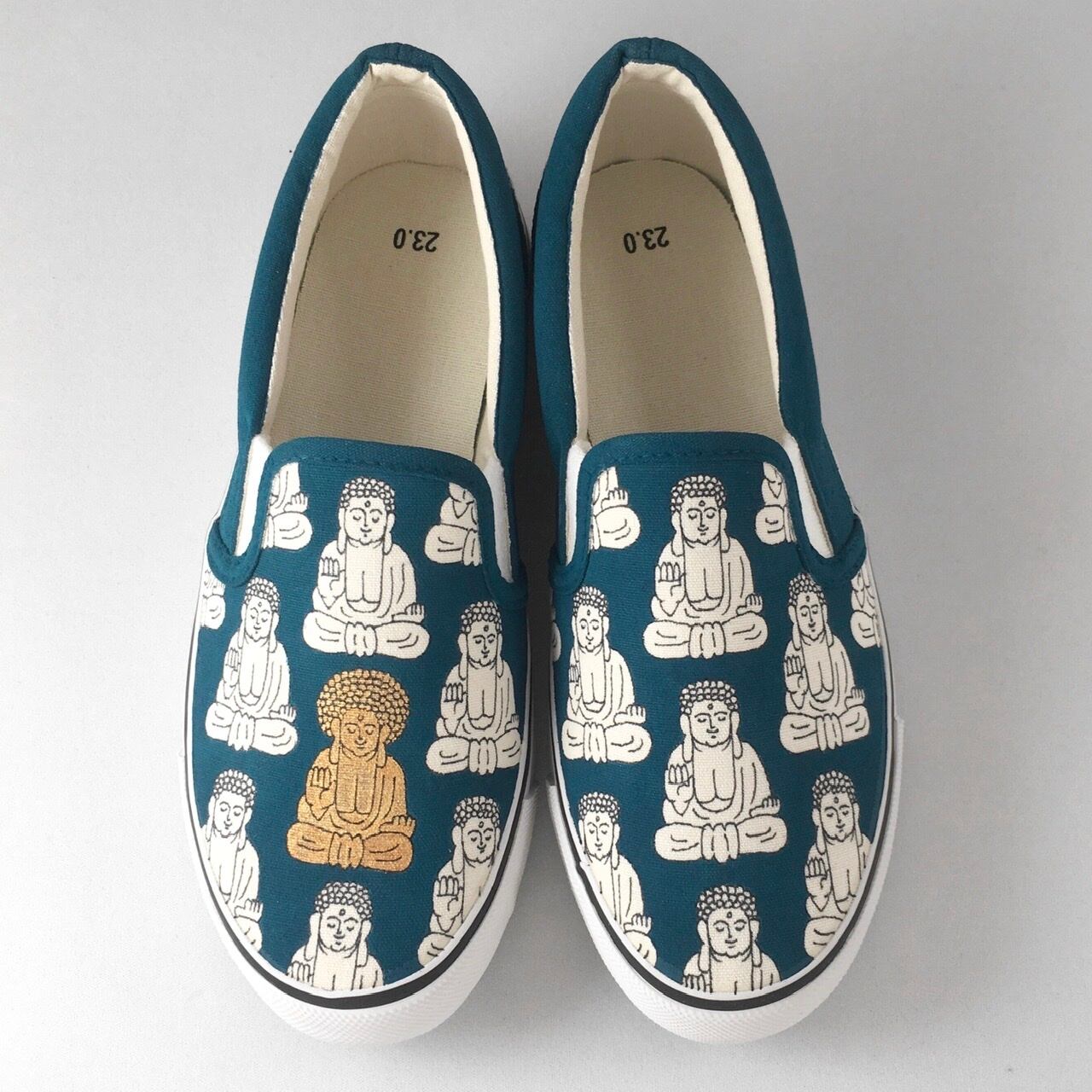 キャンバススリッポンに、手描きで『仏像柄』をペイントした【LACICO(ラシコ)】のオリジナル手描きスリッポン作品です。