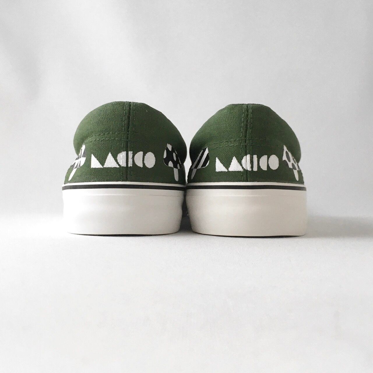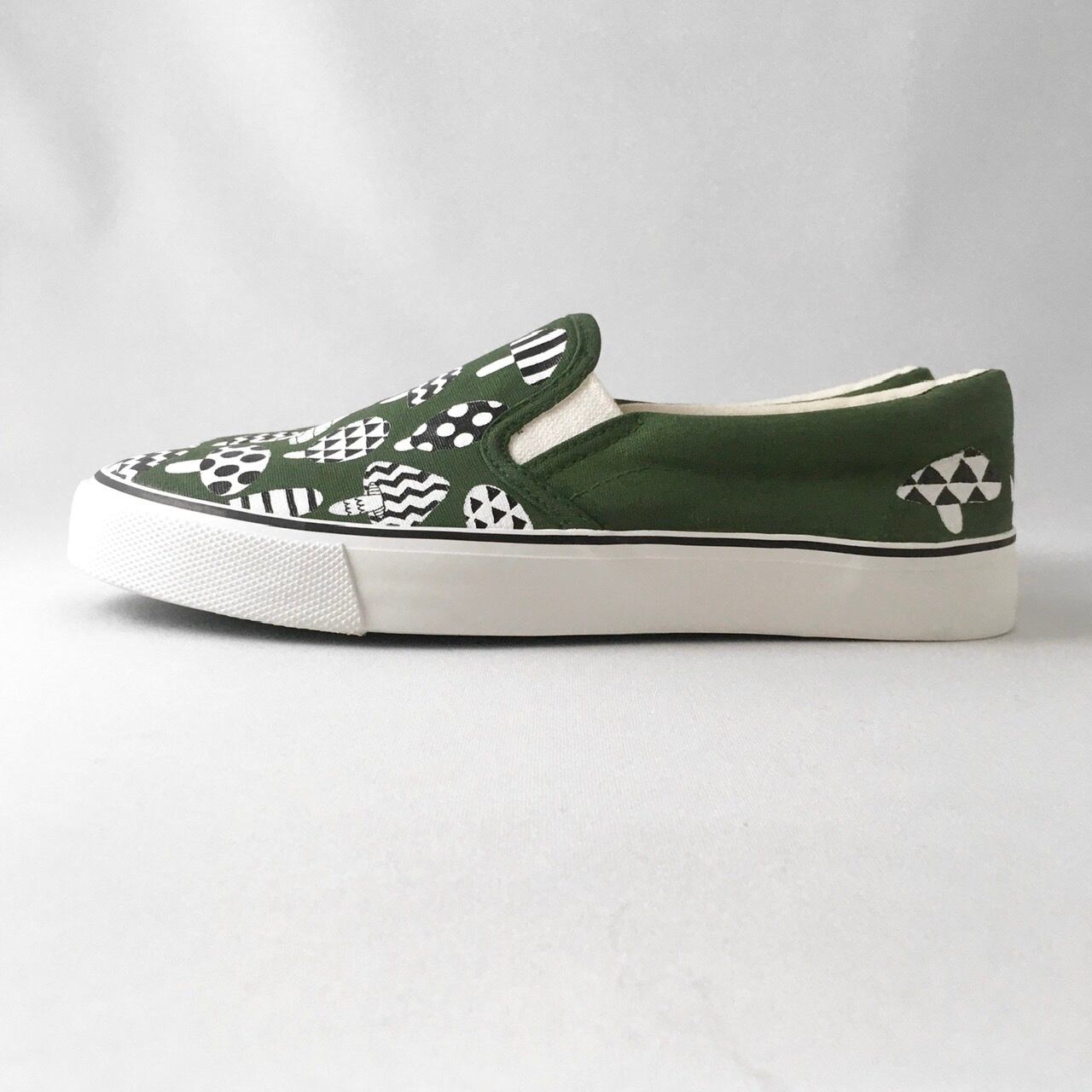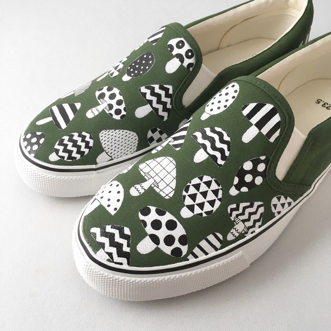 キャンバススリッポンに、手描きで『キノコ柄』をペイントした【LACICO(ラシコ)】のオリジナルハンドペイント作品です。
