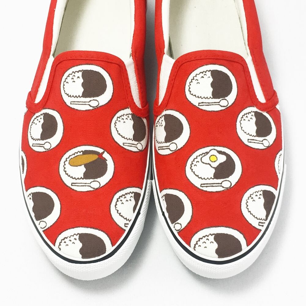 キャンバススリッポンに、手描きで『カレーライス柄』をペイントしたLACICOオリジナルハンドペイント作品です。