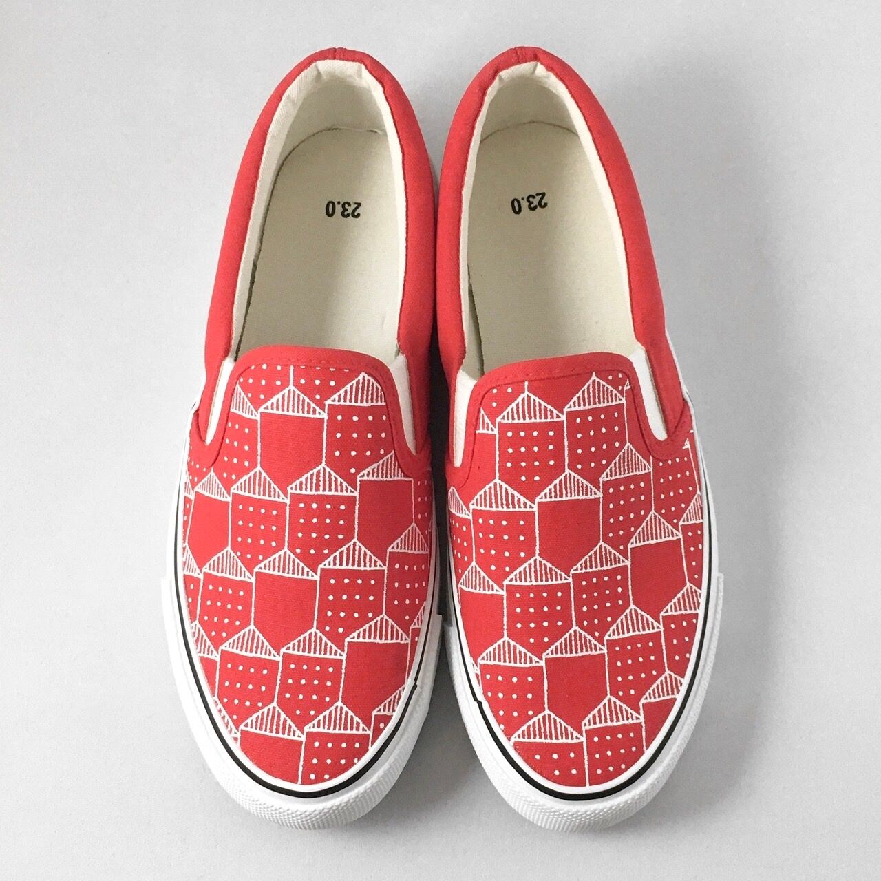 キャンバススリッポンに、手描きで『家家柄』をペイントした【LACICO(ラシコ)】のオリジナルハンドペイント作品です。