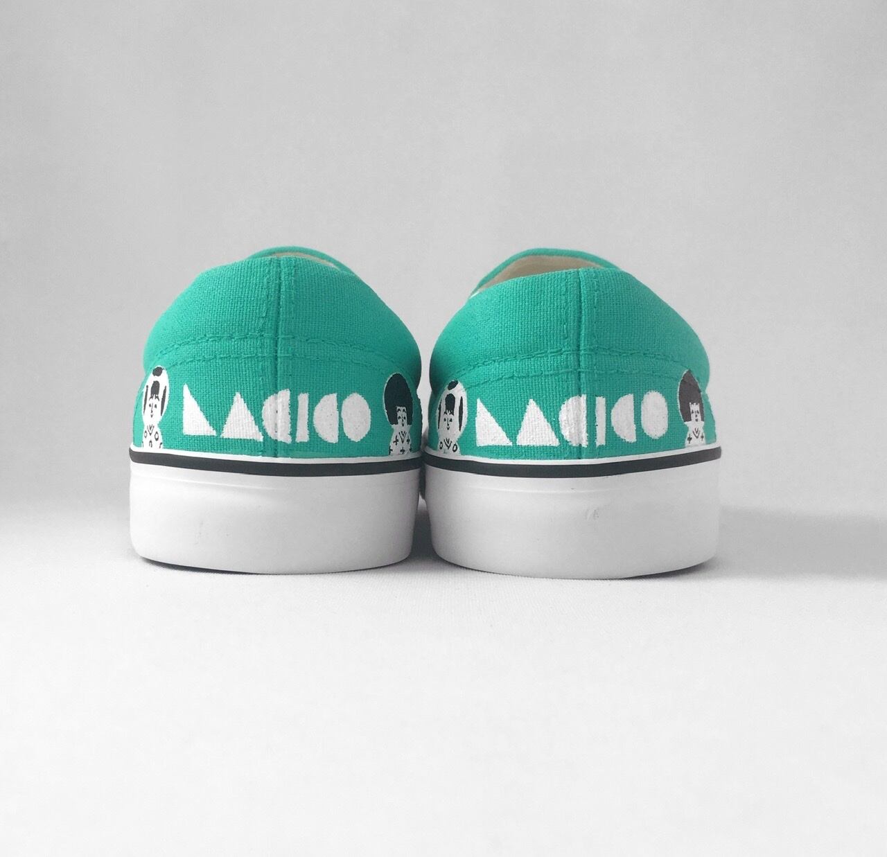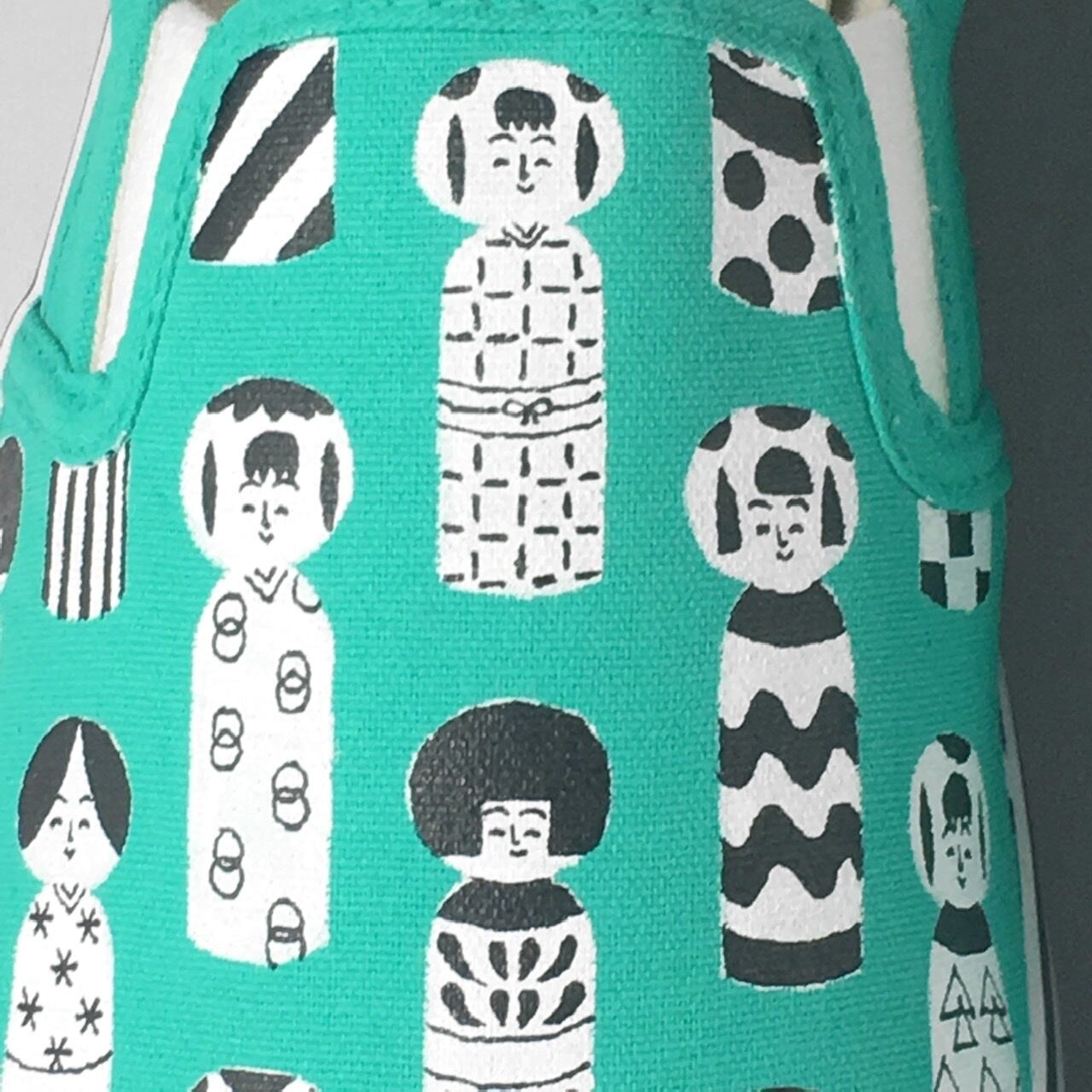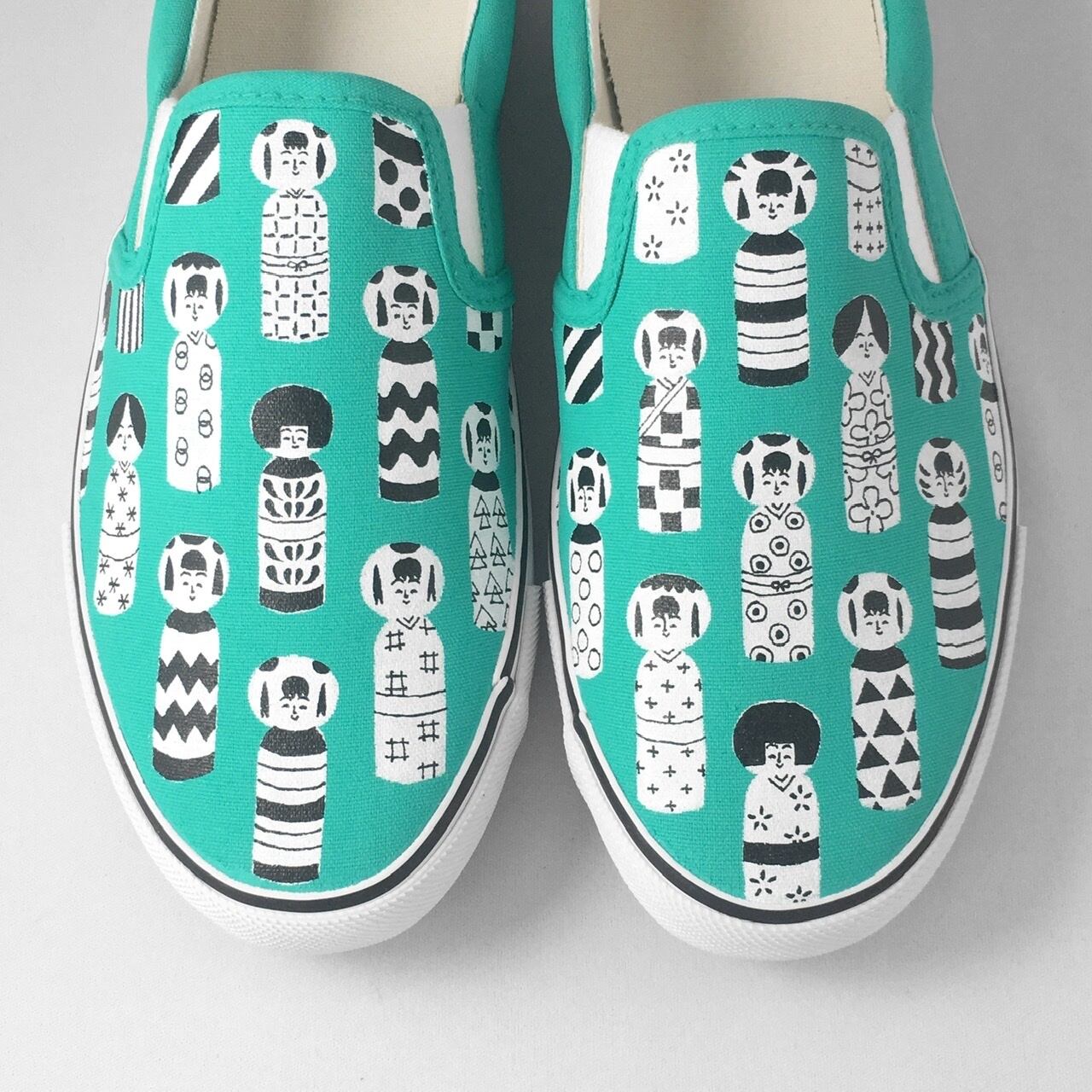 キャンバススリッポンに、手描きで『こけし柄』をペイントした【LACICO(ラシコ)】のオリジナルハンドペイント作品です。