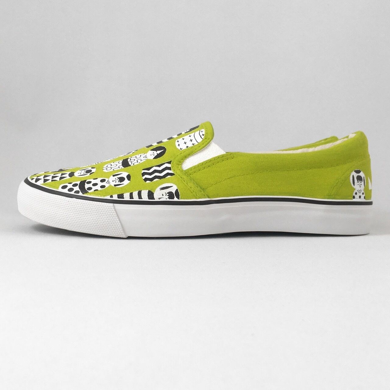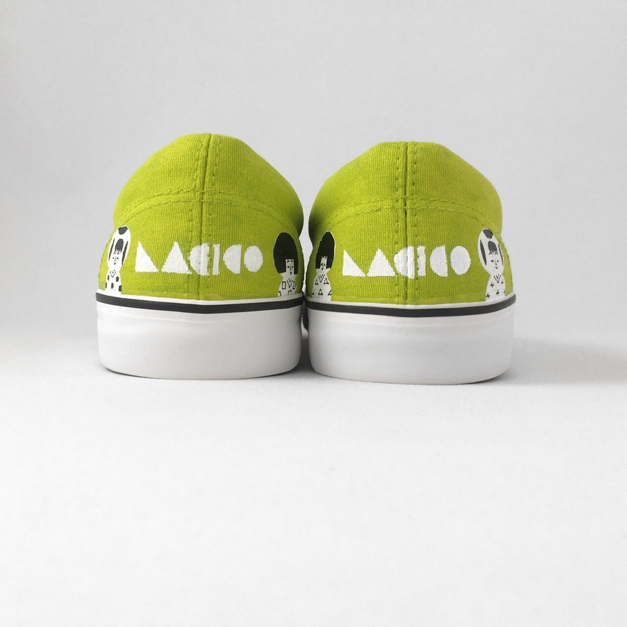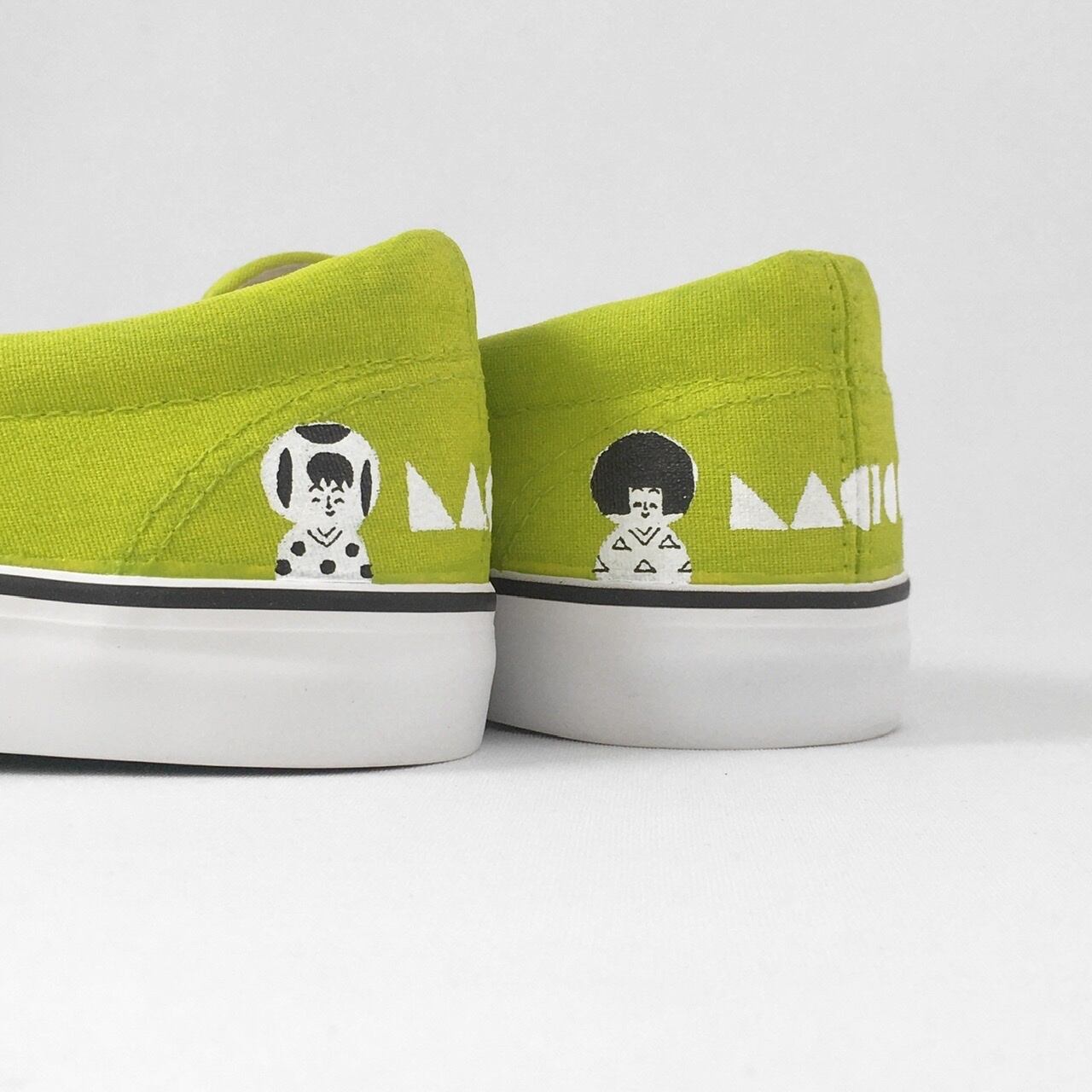 キャンバススリッポンに、手描きで『こけし柄』をペイントした【LACICO(ラシコ)】のオリジナルハンドペイント作品です。