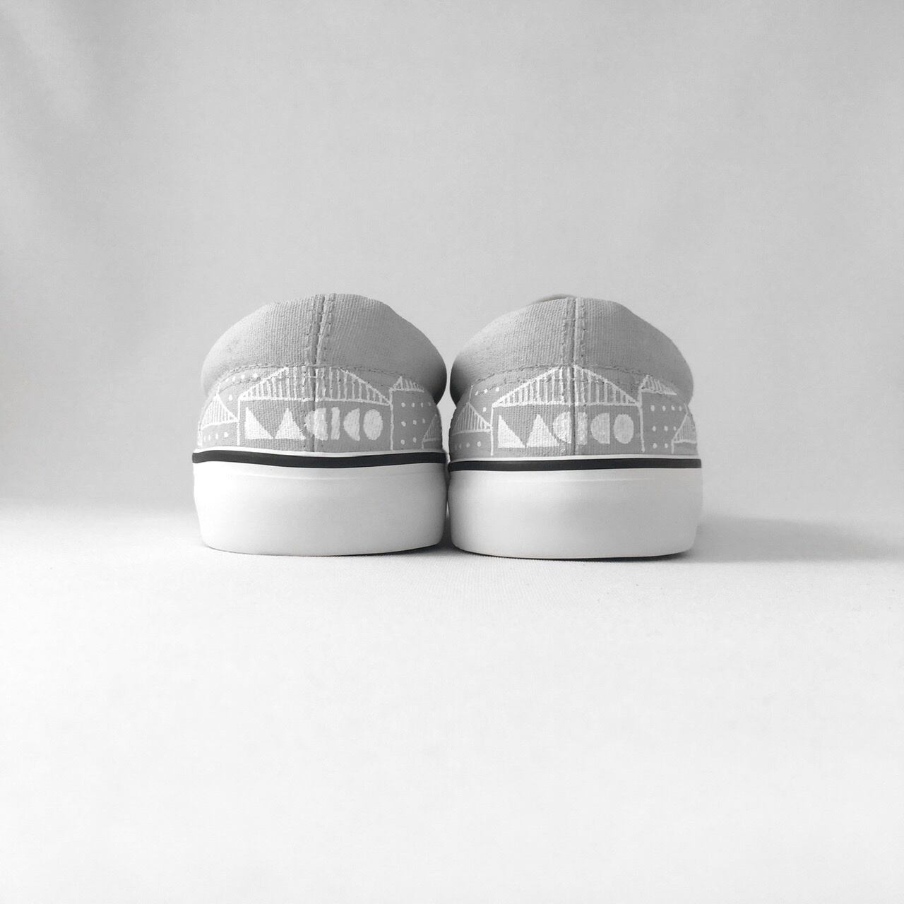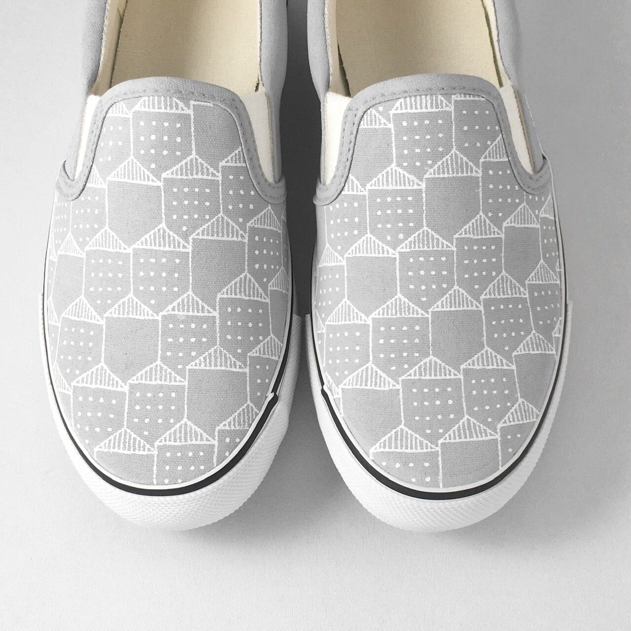 キャンバススリッポンに、手描きで『家家柄』をペイントした【LACICO(ラシコ)】のオリジナルハンドペイント作品です。