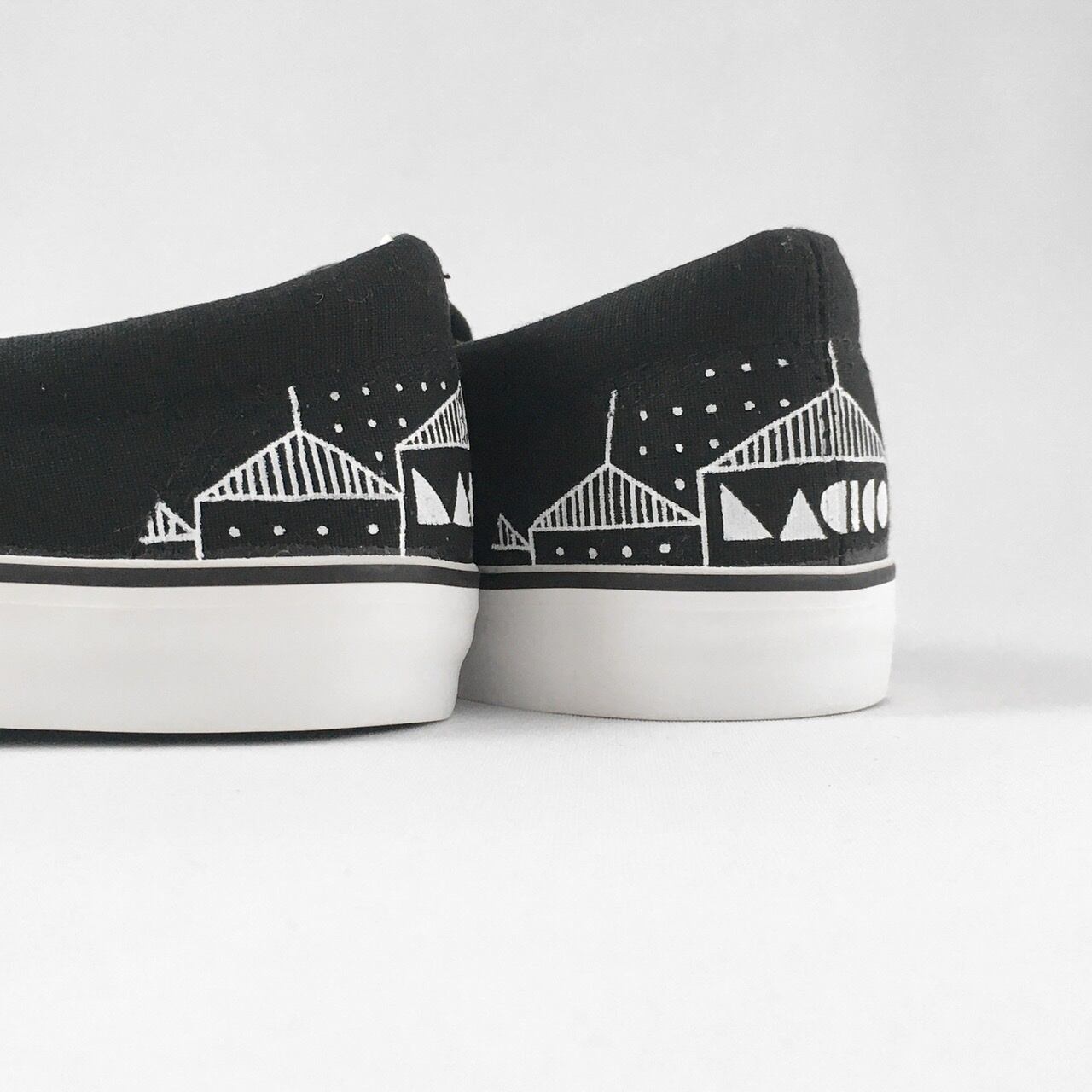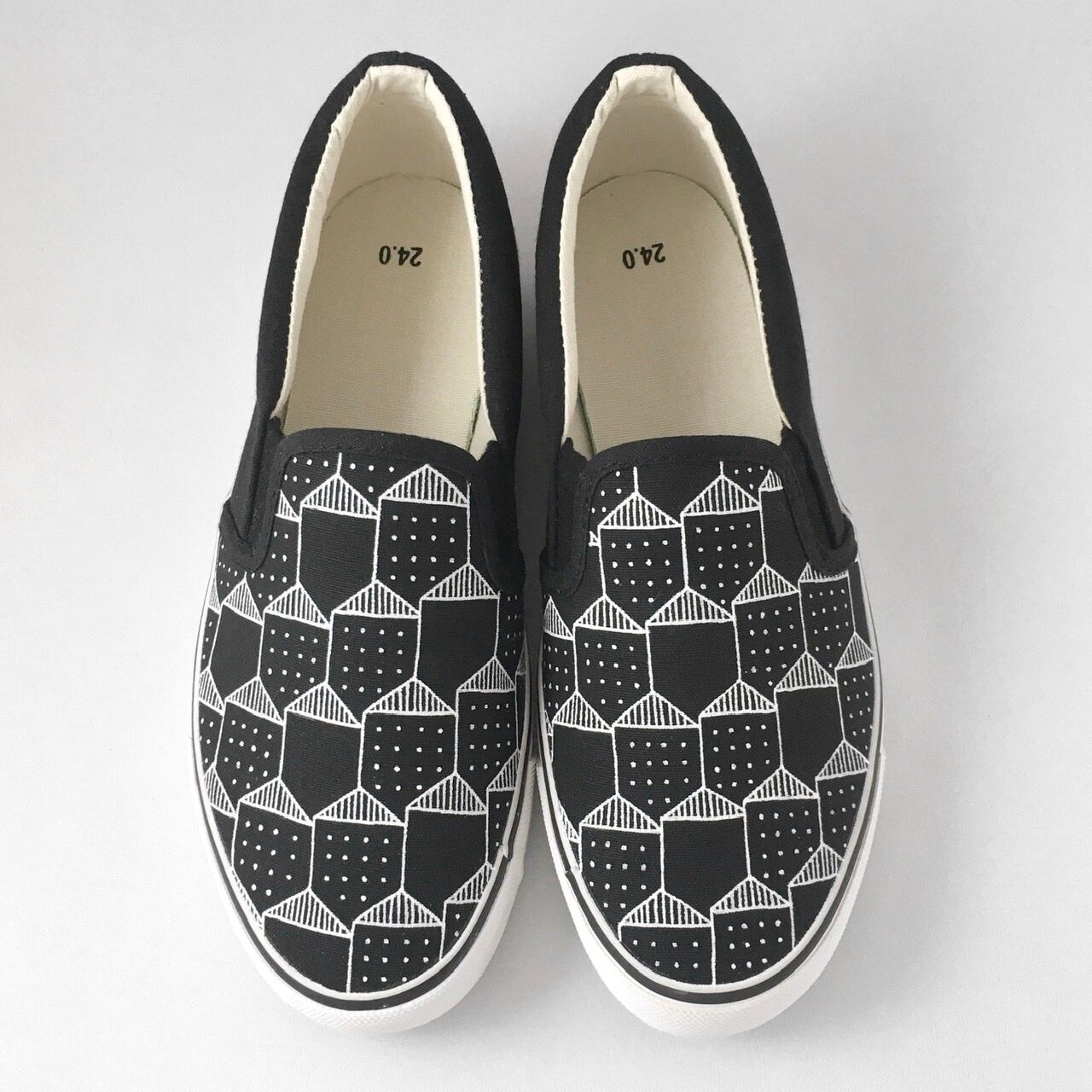 キャンバススリッポンに、手描きで『家家柄』をペイントした【LACICO(ラシコ)】のオリジナルハンドペイント作品です。
