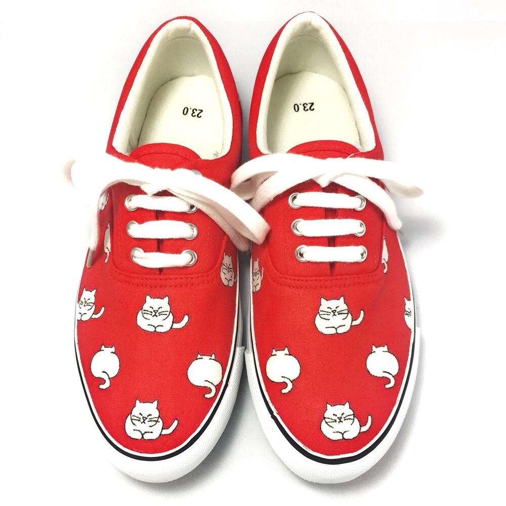 デッキシューズに、手描きで『香箱座りネコ柄』をペイントした【LACICO(ラシコ)】のオリジナルハンドペイント作品です。