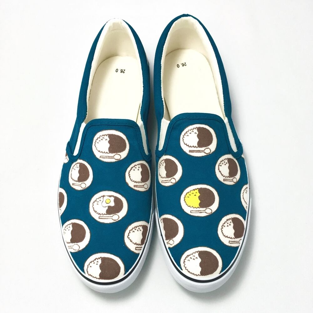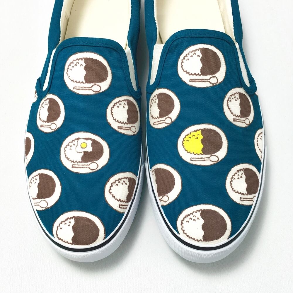 キャンバススリッポンに、手描きで『カレーライス柄』をペイントしたLACICOオリジナルハンドペイント作品です。