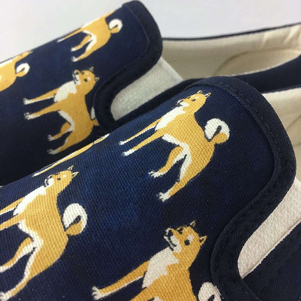 「柴犬柄」をスリッポンにハンドペイントした【LACICO(ラシコ)】のオリジナル手描き作品です。