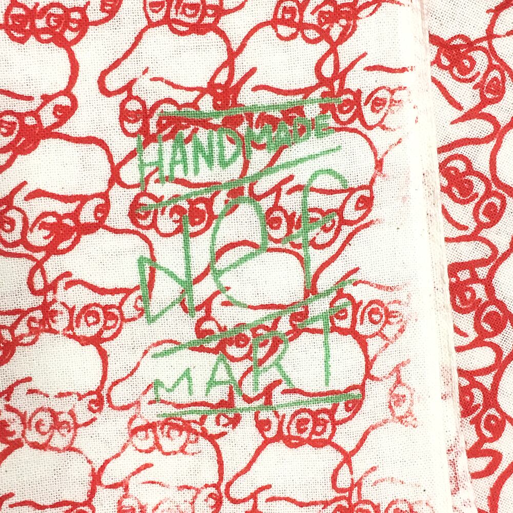 こちらの作品は、DEFMARTマークの「手」のイラストをアレンジし、手染めによって仕上げられています。