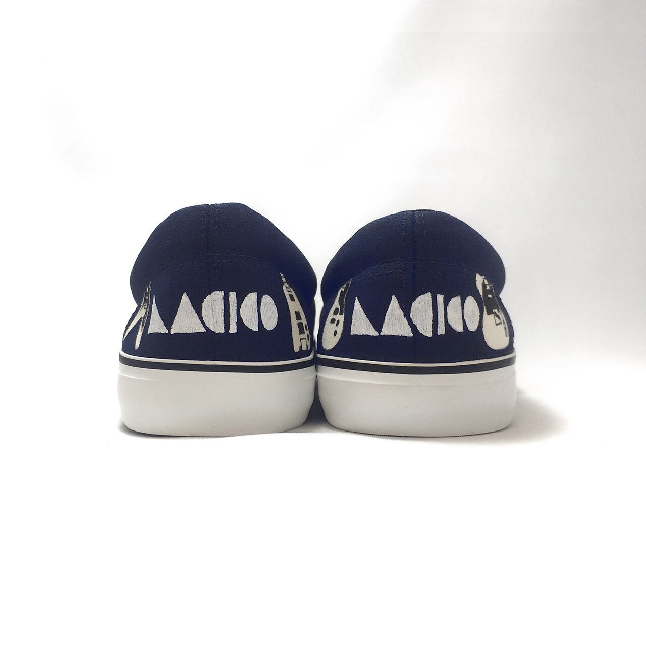 「ギター柄」をスリッポンにハンドペイントした【LACICO(ラシコ)】のオリジナル手描き作品です。