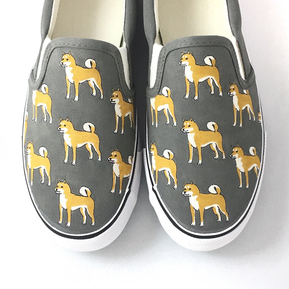 「柴犬柄」をスリッポンにハンドペイントした【LACICO(ラシコ)】のオリジナル手描き作品です。