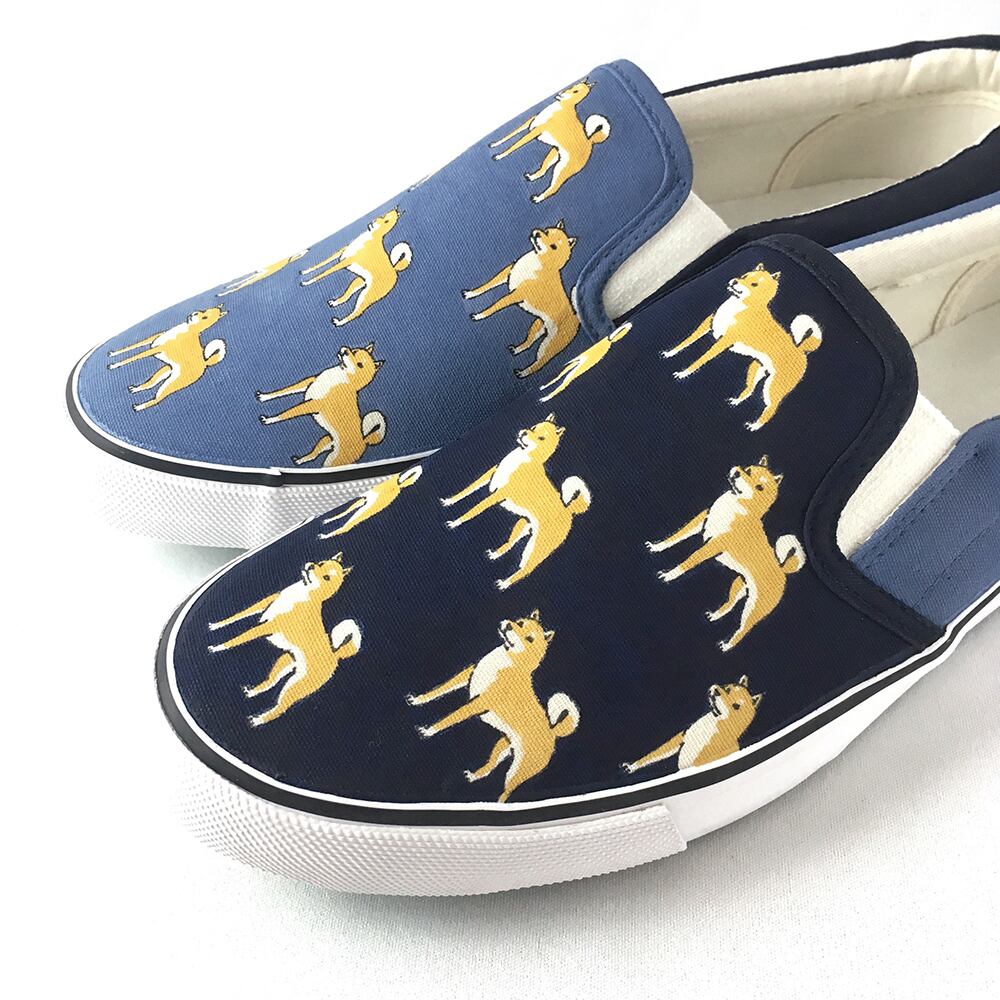 「柴犬柄」をスリッポンにハンドペイントした【LACICO(ラシコ)】のオリジナル手描き作品です。