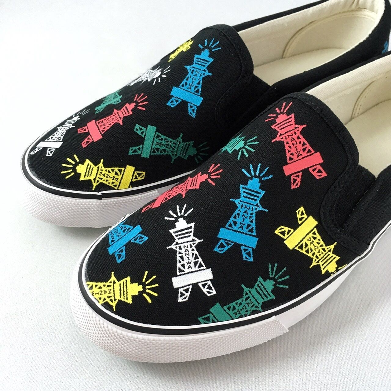 「大阪/関西/なにわ」をテーマに、スリッポンにハンドペイントした【LACICO(ラシコ)】のオリジナル手描き作品です。