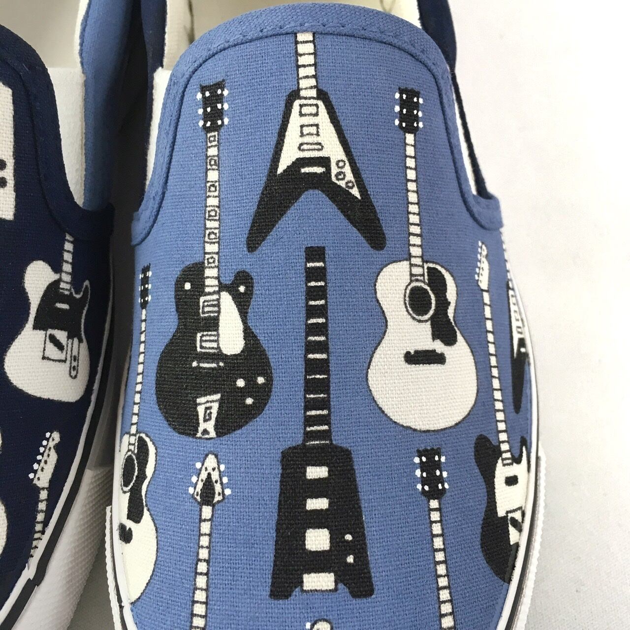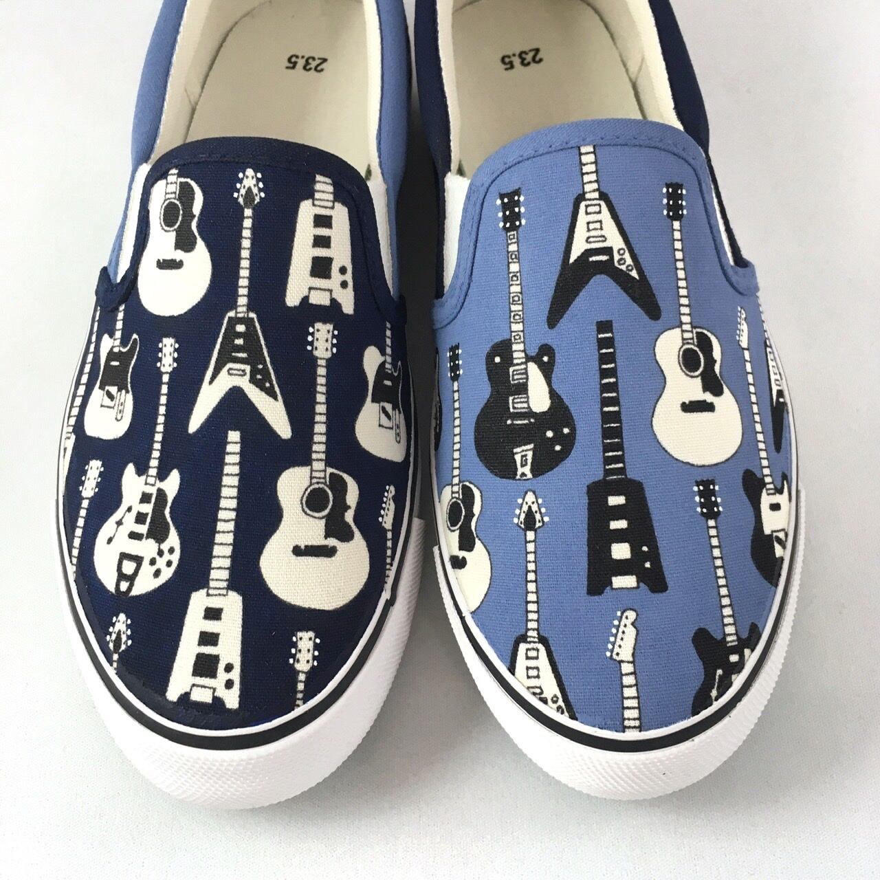 「ギター柄」をスリッポンにハンドペイントした【LACICO(ラシコ)】のオリジナル手描き作品です。