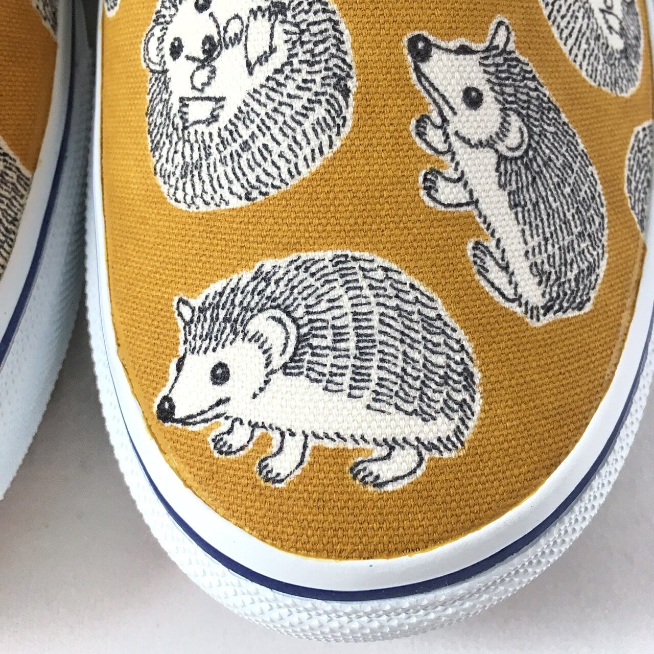 VANSスリッポンに「ハリネズミ柄」をハンドペイントした【LACICO(ラシコ)】のオリジナル手描き作品です。