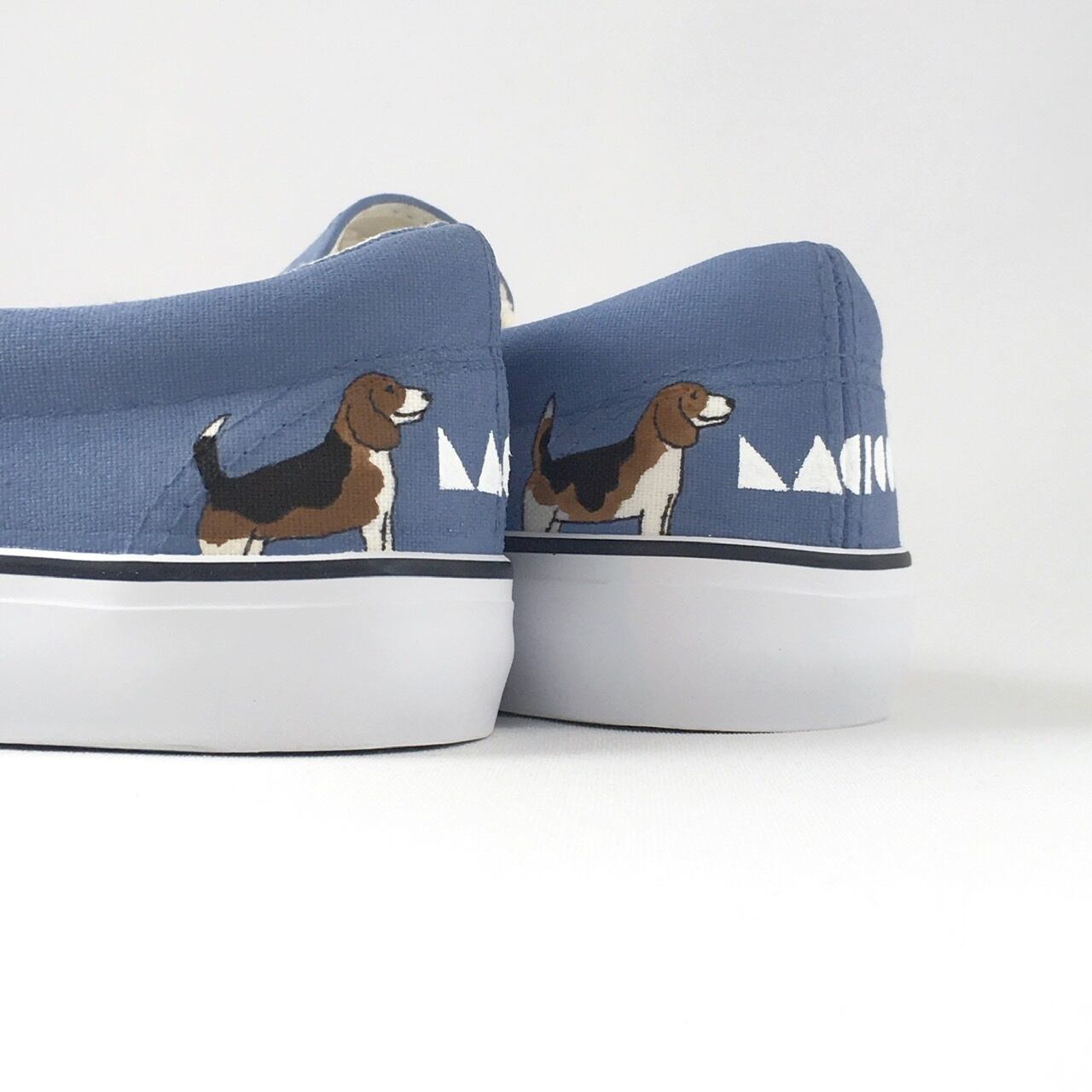 「ビーグル犬柄」をスリッポンにハンドペイントしたLACICOオリジナル手描き作品です。
