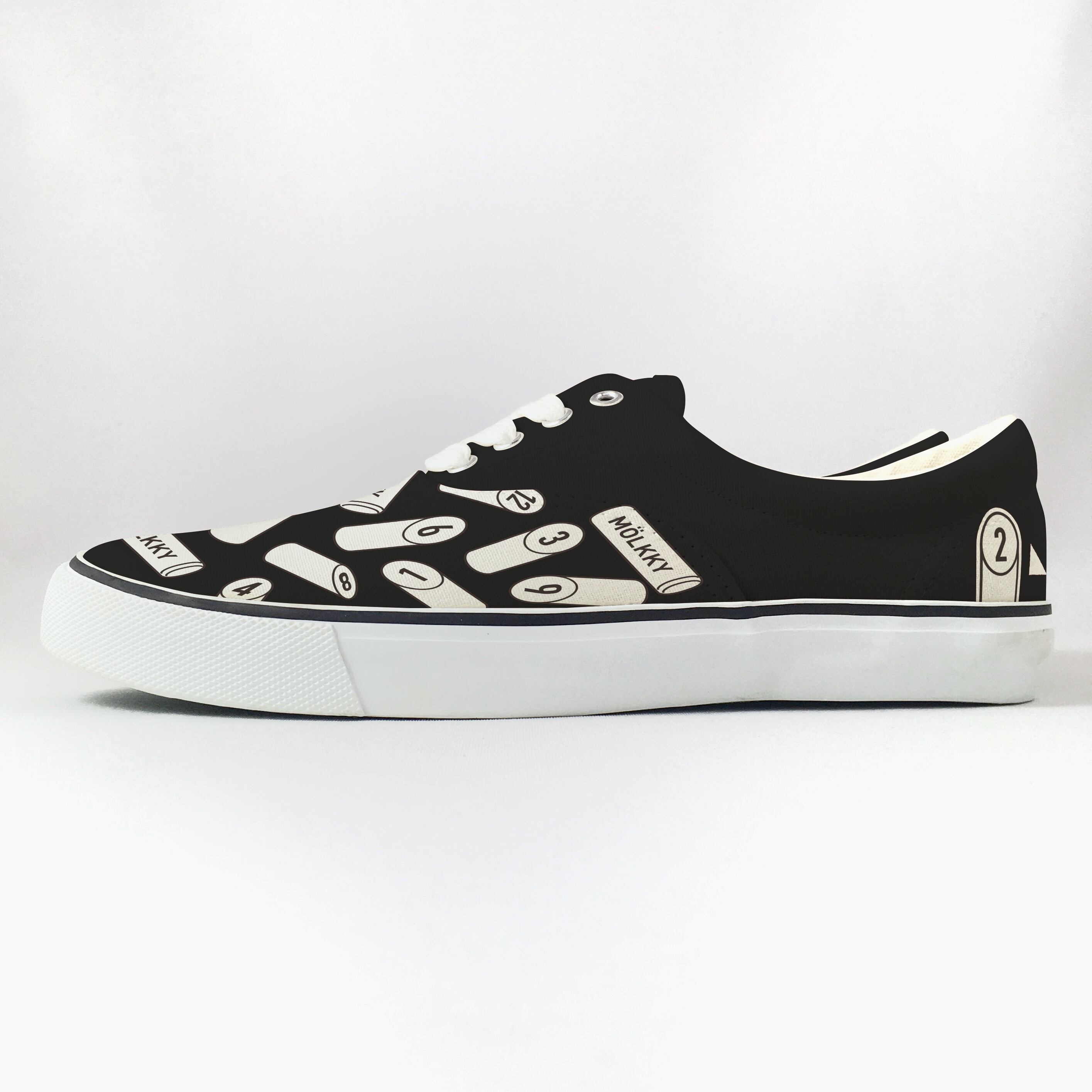 フィンランドのスポーツ『Mölkky(モルック)』柄をデッキシューズにハンドペイントしたLACICO(ラシコ)のオリジナル作品です。