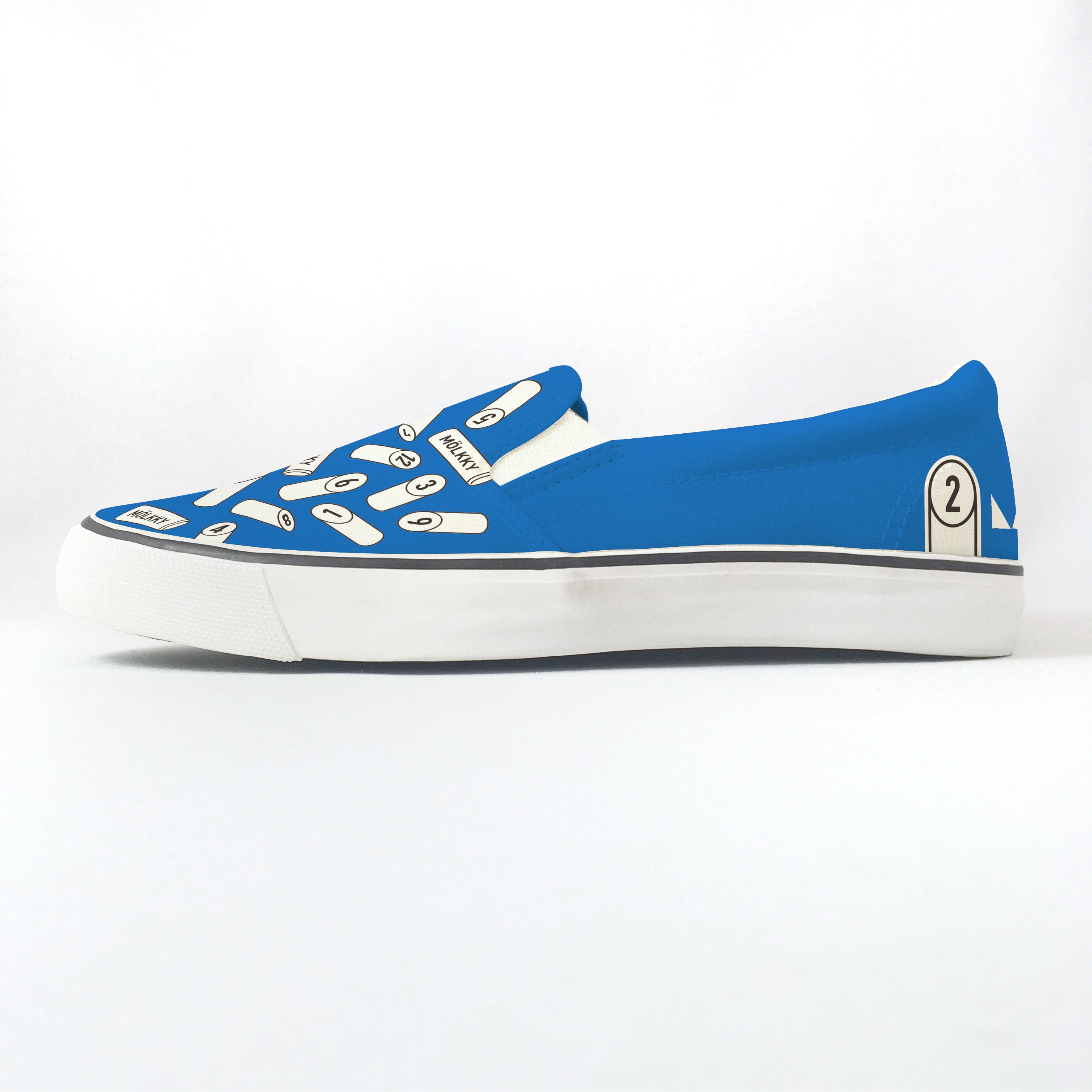 フィンランドのスポーツ『Mölkky(モルック)』柄をスリッポンにハンドペイントしたLACICO(ラシコ)のオリジナル作品です。