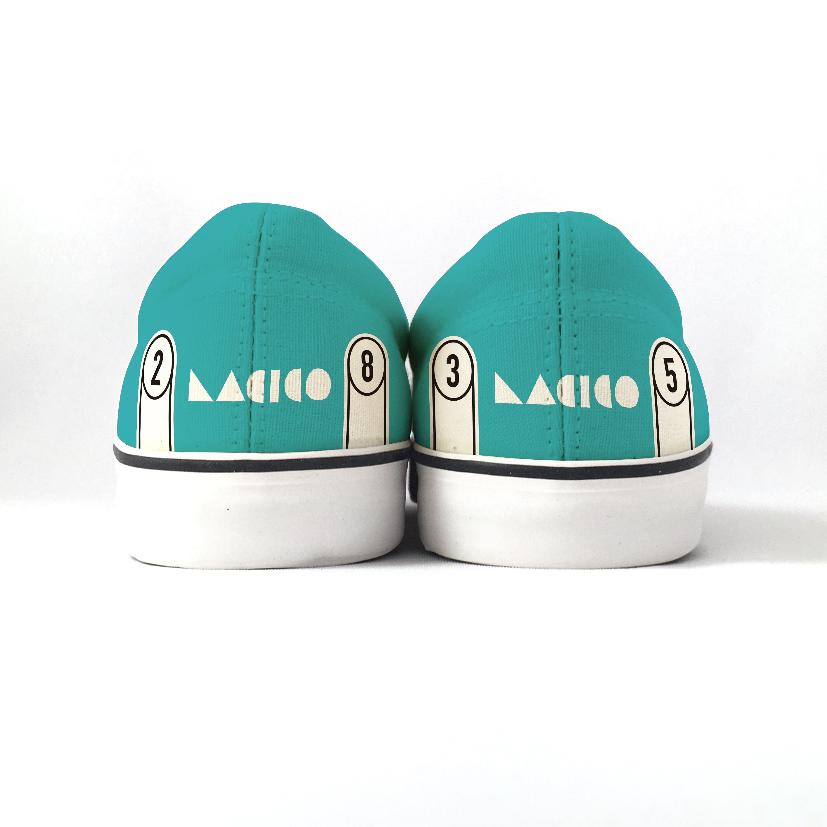 フィンランドのスポーツ『Mölkky(モルック)』柄をスリッポンにハンドペイントしたLACICO(ラシコ)のオリジナル作品です。