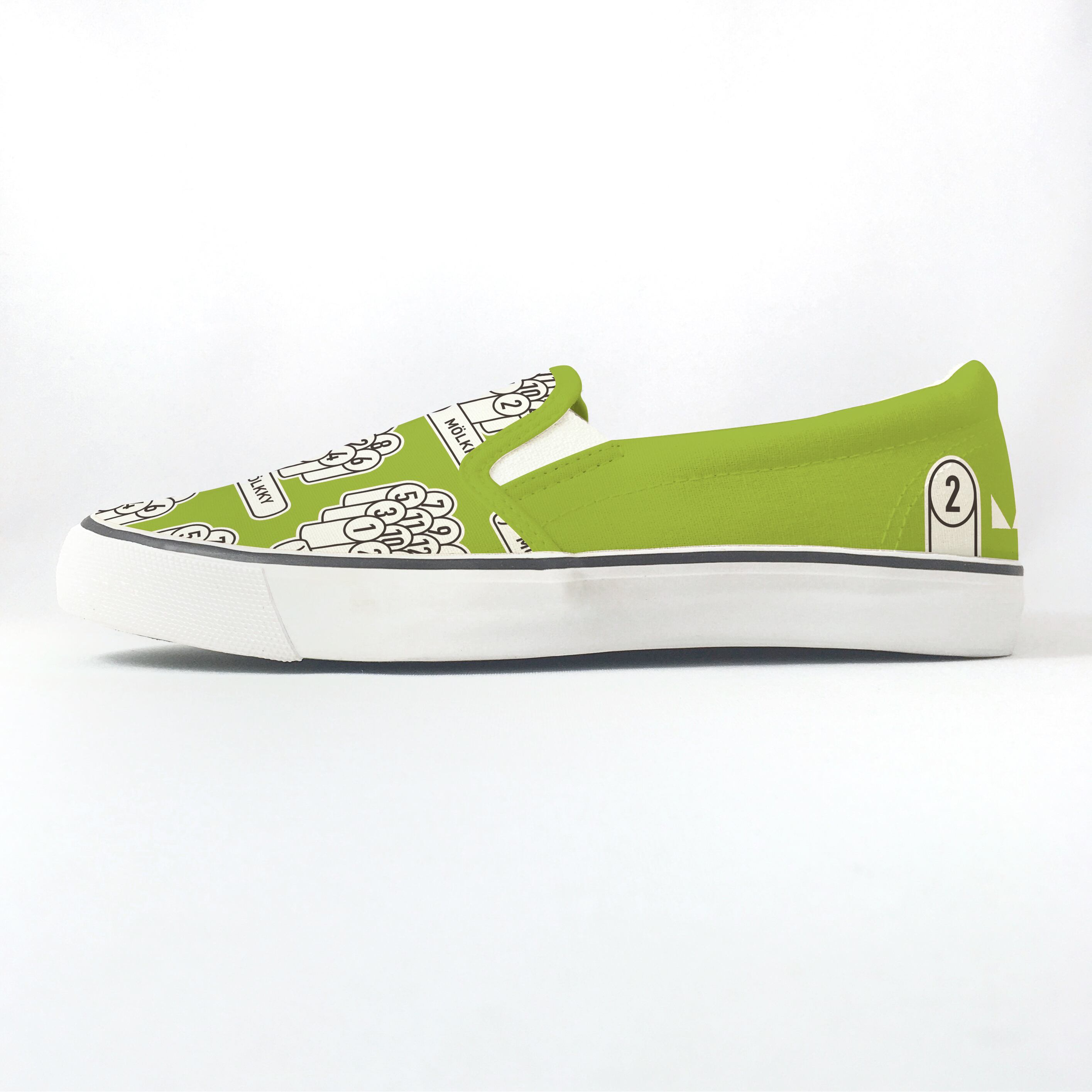 フィンランドのスポーツ『Mölkky(モルック)』柄をスリッポンにハンドペイントしたLACICO(ラシコ)のオリジナル作品です。