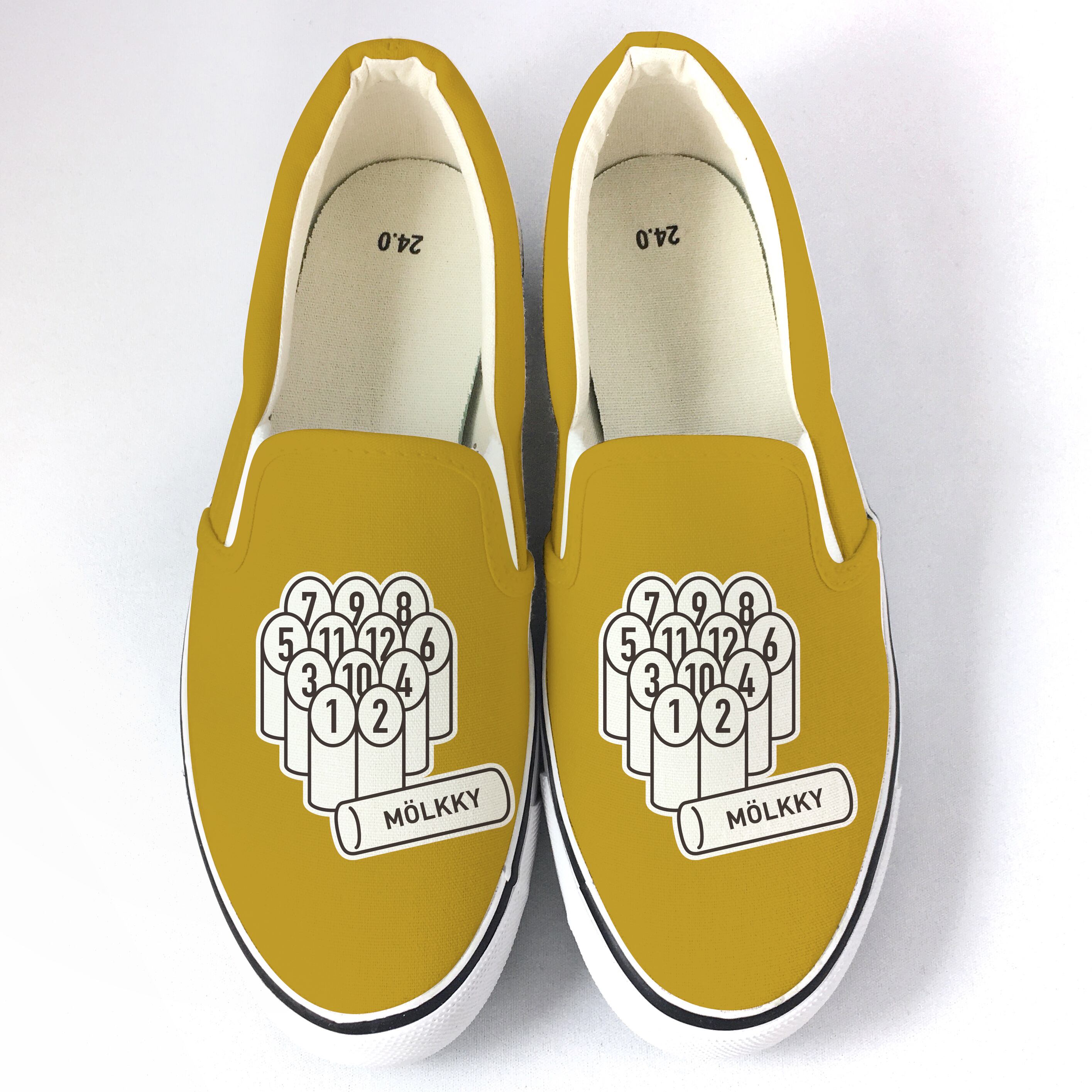 フィンランドのスポーツ『Mölkky(モルック)』柄をスリッポンにハンドペイントしたLACICO(ラシコ)のオリジナル作品です。