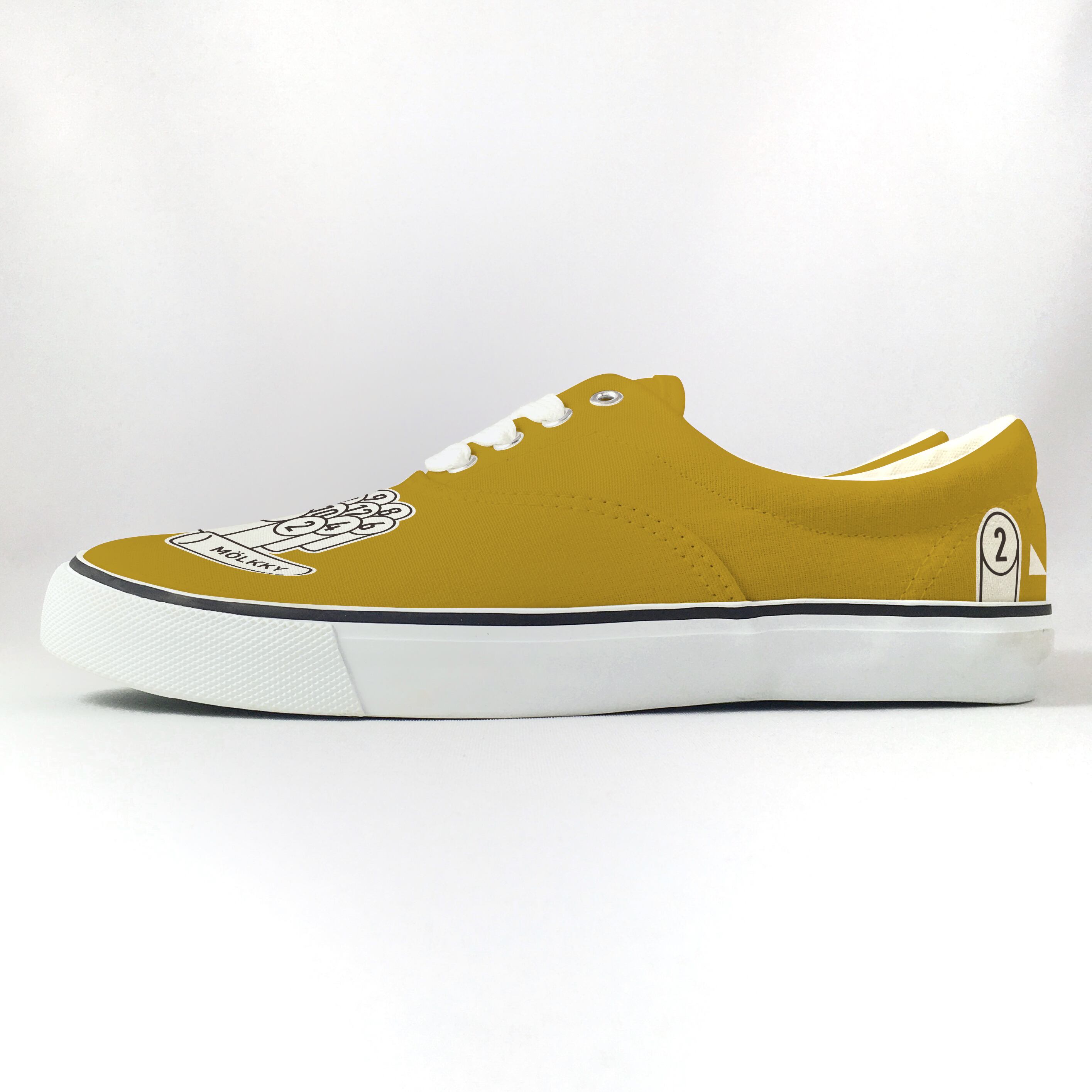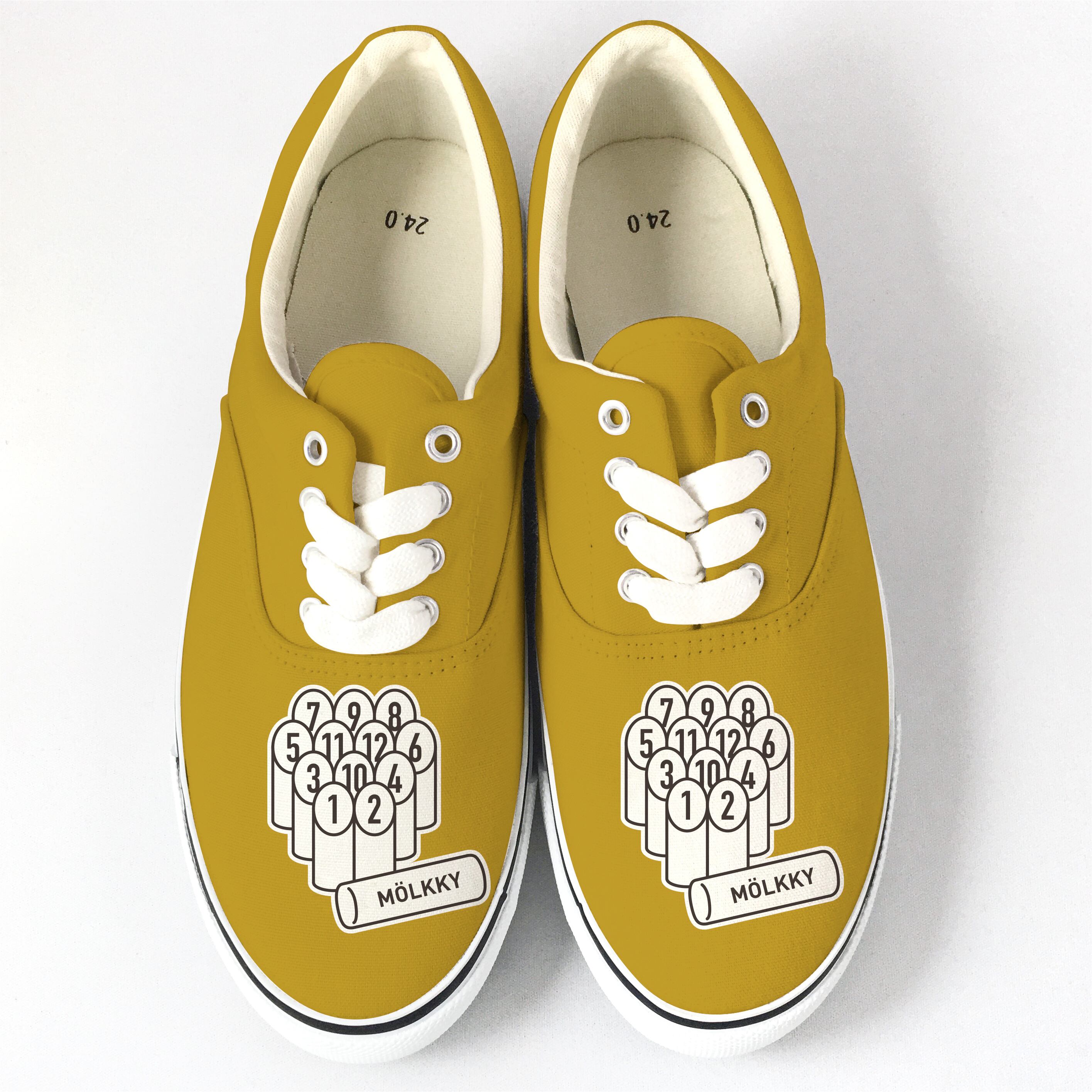フィンランドのスポーツ『Mölkky(モルック)』柄をデッキシューズにハンドペイントしたLACICO(ラシコ)のオリジナル作品です。