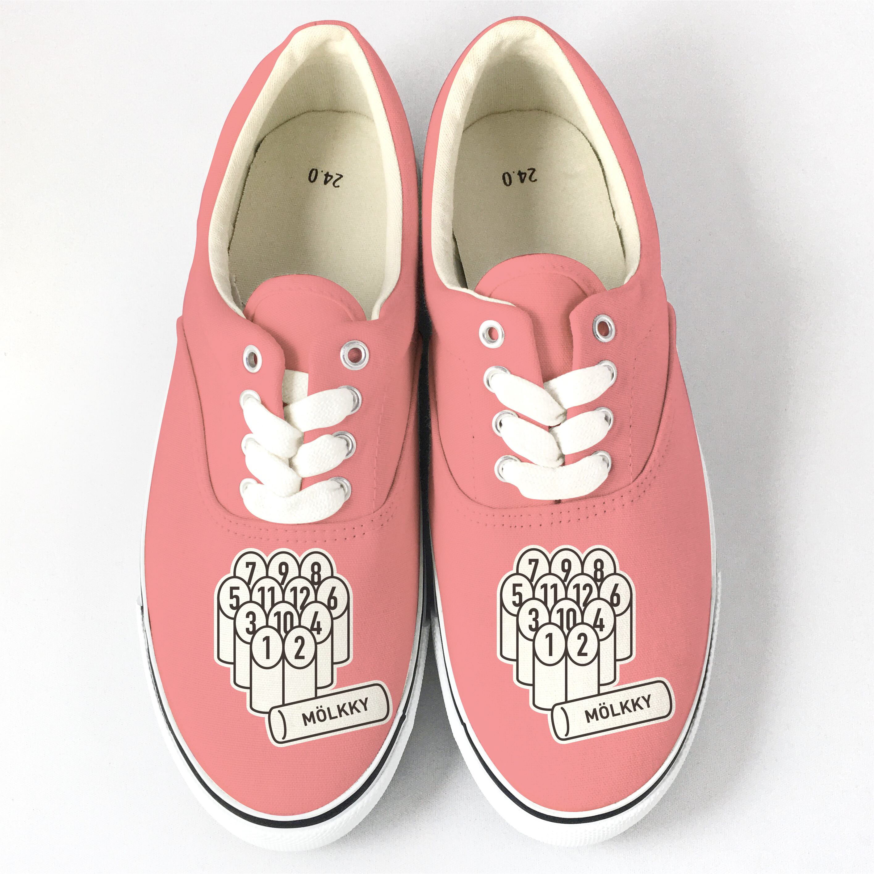 フィンランドのスポーツ『Mölkky(モルック)』柄をデッキシューズにハンドペイントしたLACICO(ラシコ)のオリジナル作品です。