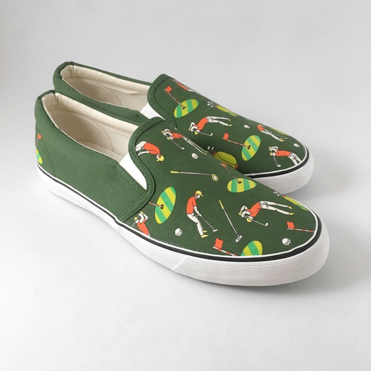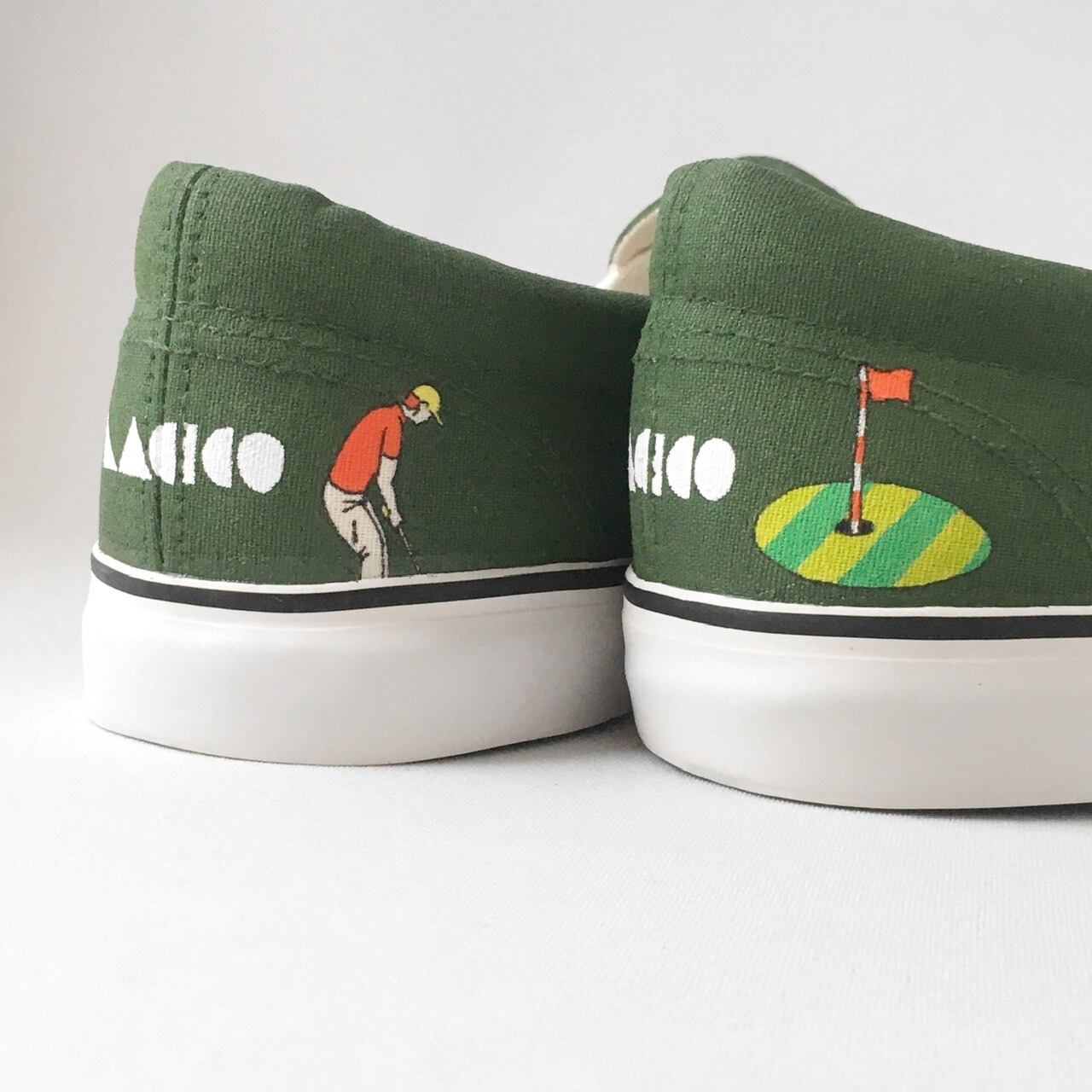「ゴルフ柄」をスリッポンにハンドペイントした【LACICO(ラシコ)】のオリジナル手描き作品です。