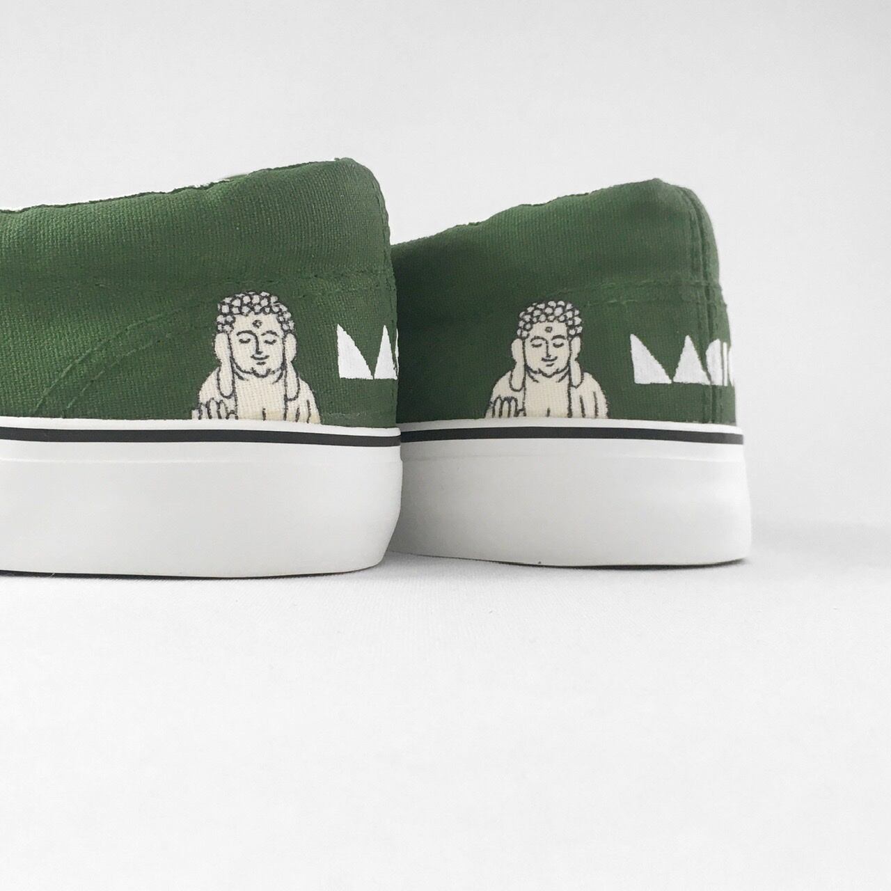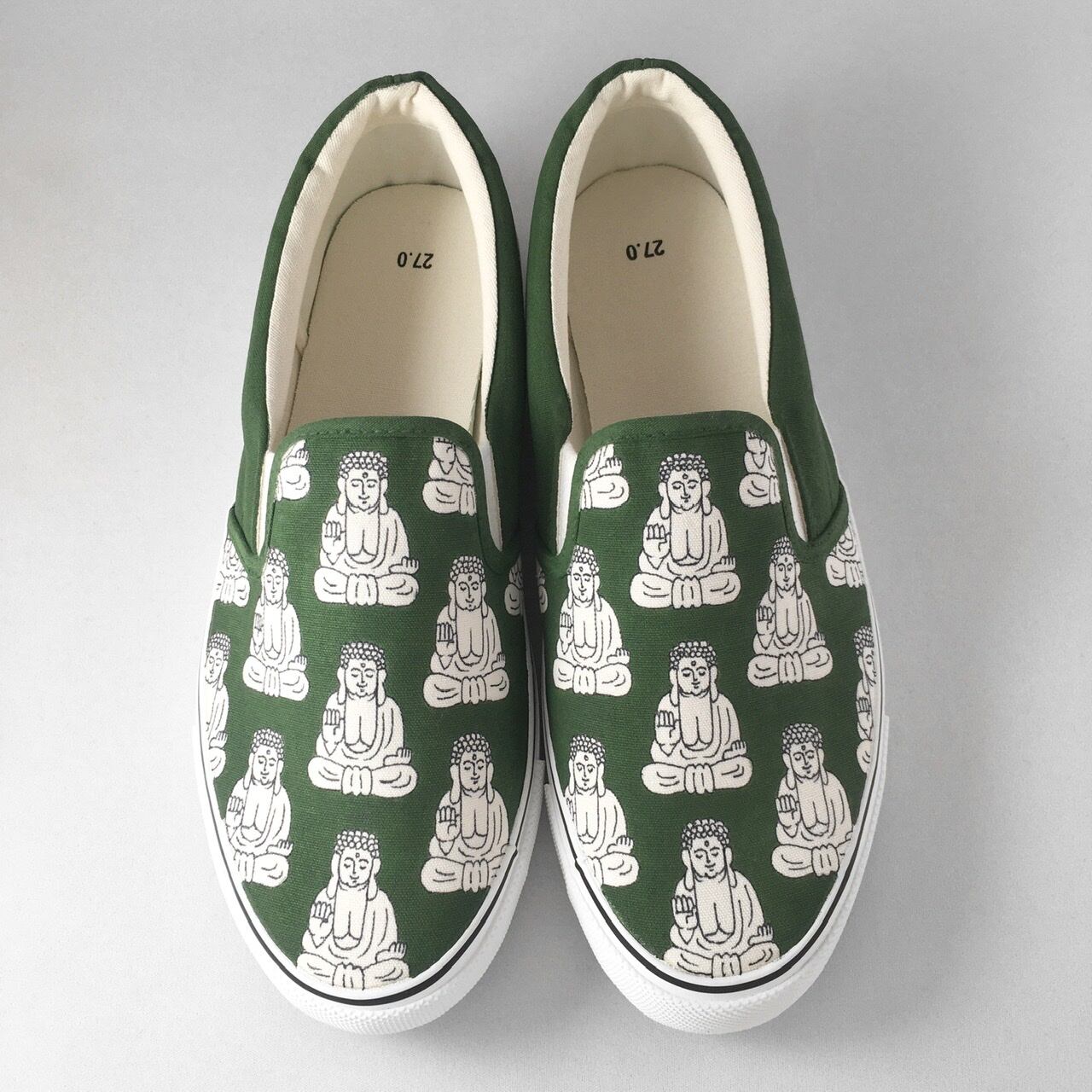 キャンバススリッポンに、手描きで『仏像柄』をペイントしたLACICOオリジナル手描きスリッポン作品です。