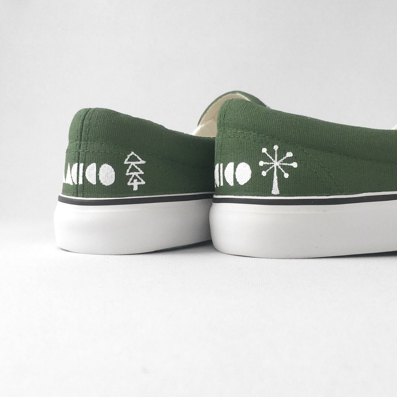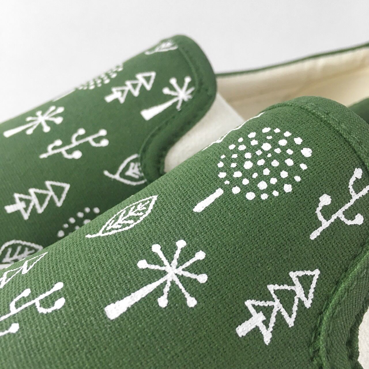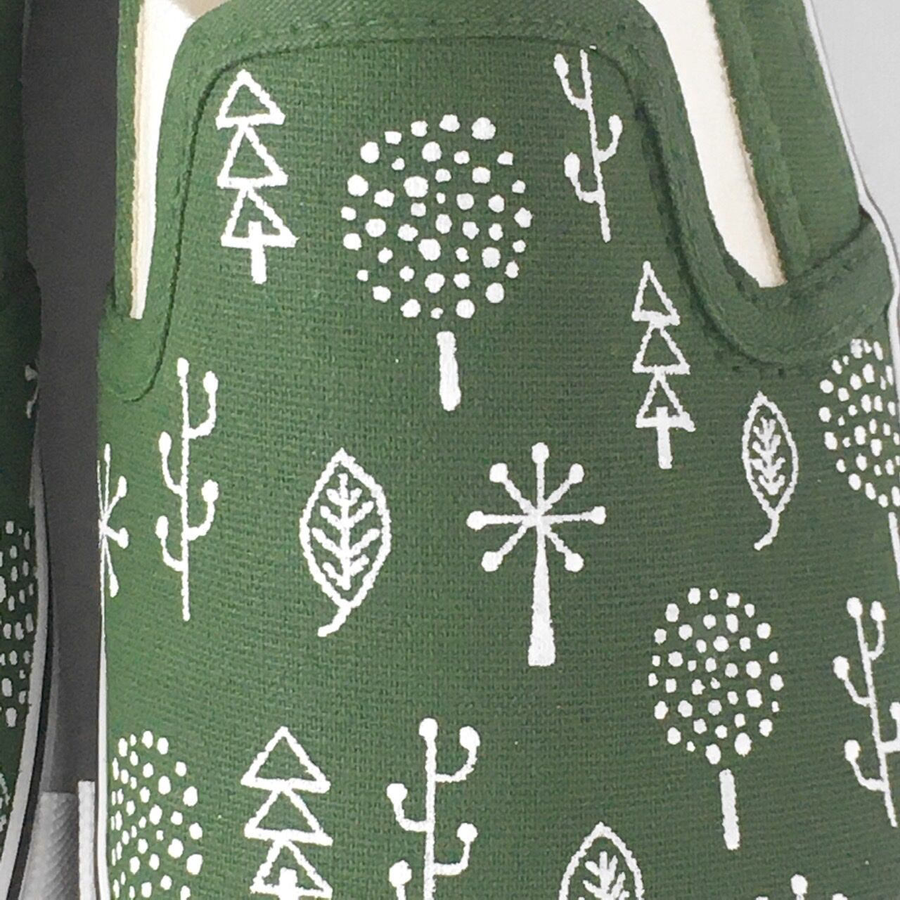 キャンバススリッポンに、手描きで『ハーブ柄』をペイントしたLACICOオリジナルハンドペイント作品です。
