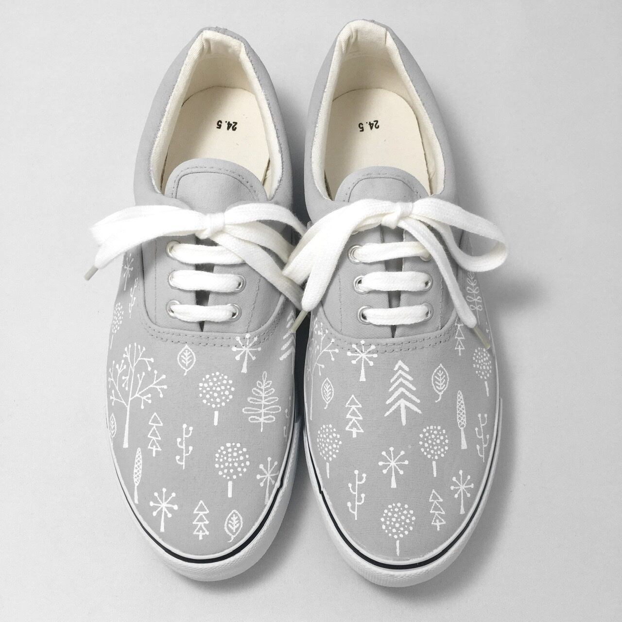 キャンバススリッポンに、手描きで『ハーブ柄』をペイントしたLACICOオリジナルハンドペイント作品です。