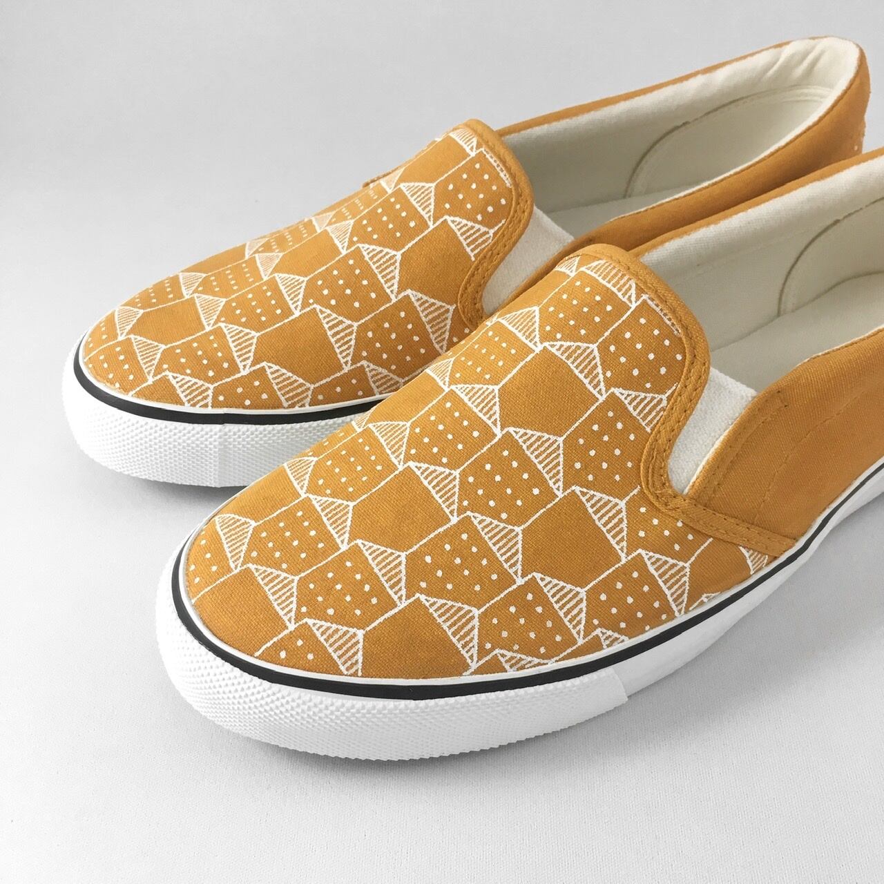 キャンバススリッポンに、手描きで『家家柄』をペイントしたLACICOオリジナルハンドペイント作品です。