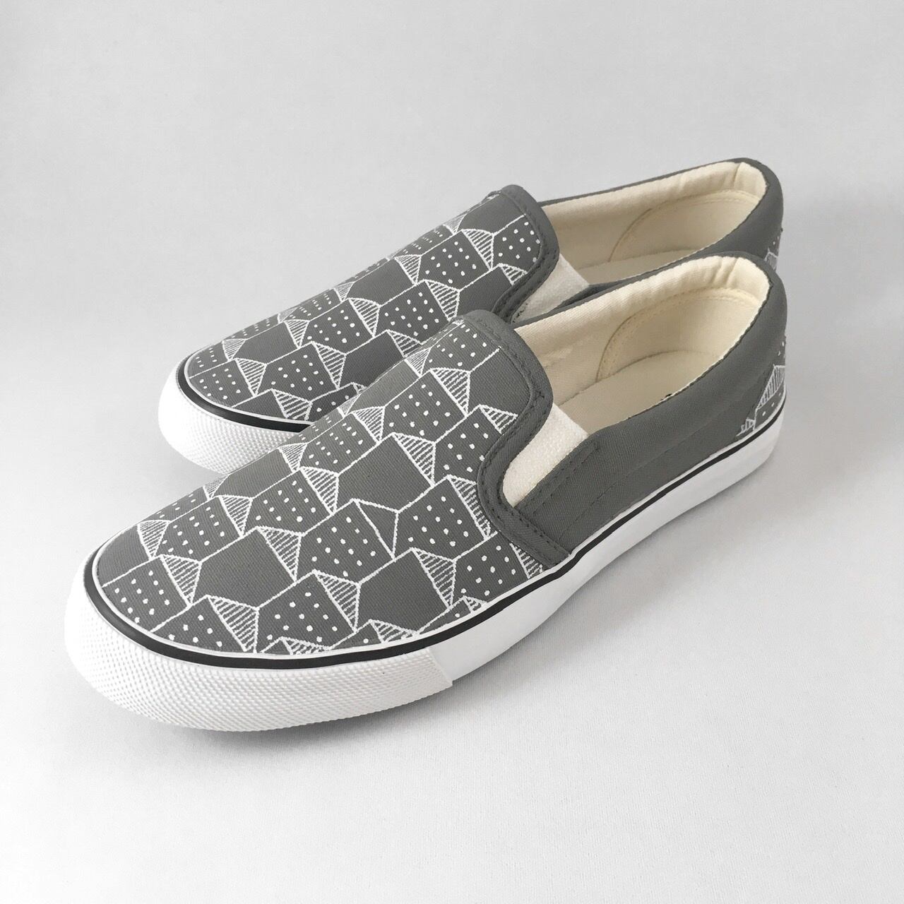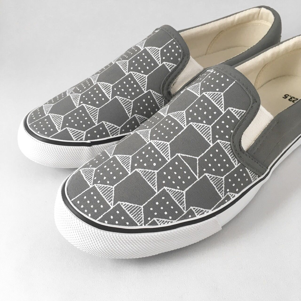 キャンバススリッポンに、手描きで『家家柄』をペイントしたLACICOオリジナルハンドペイント作品です。