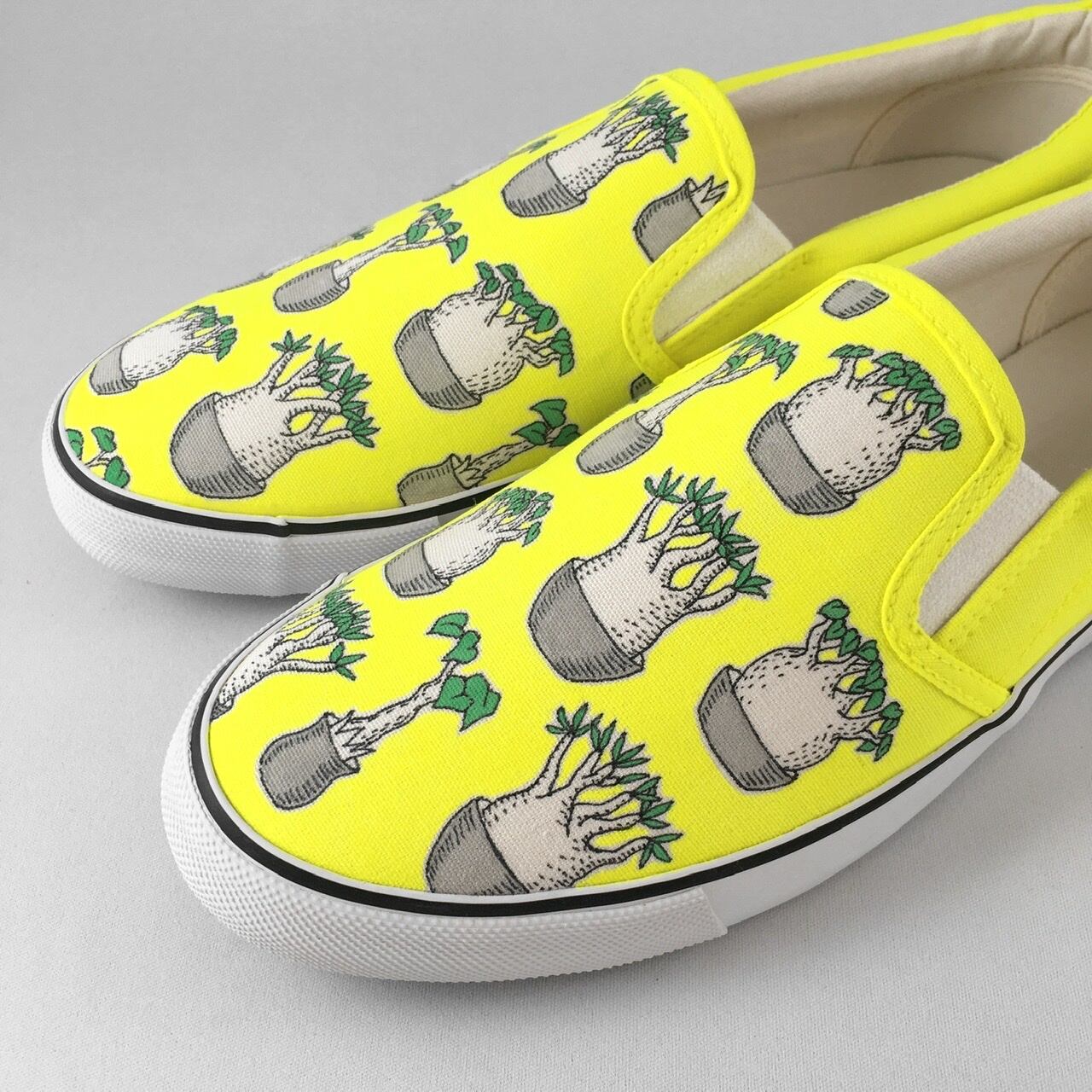 キャンバススリッポンに、手描きで『コーデックス(塊根植物)柄』をペイントしたLACICOオリジナルハンドペイント作品です。