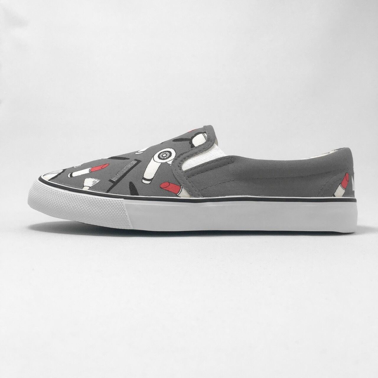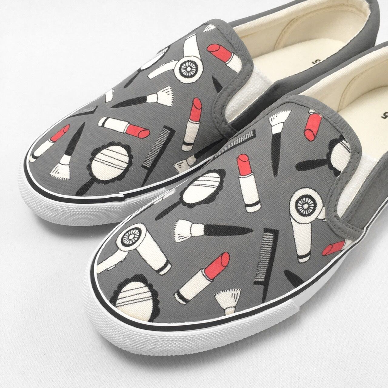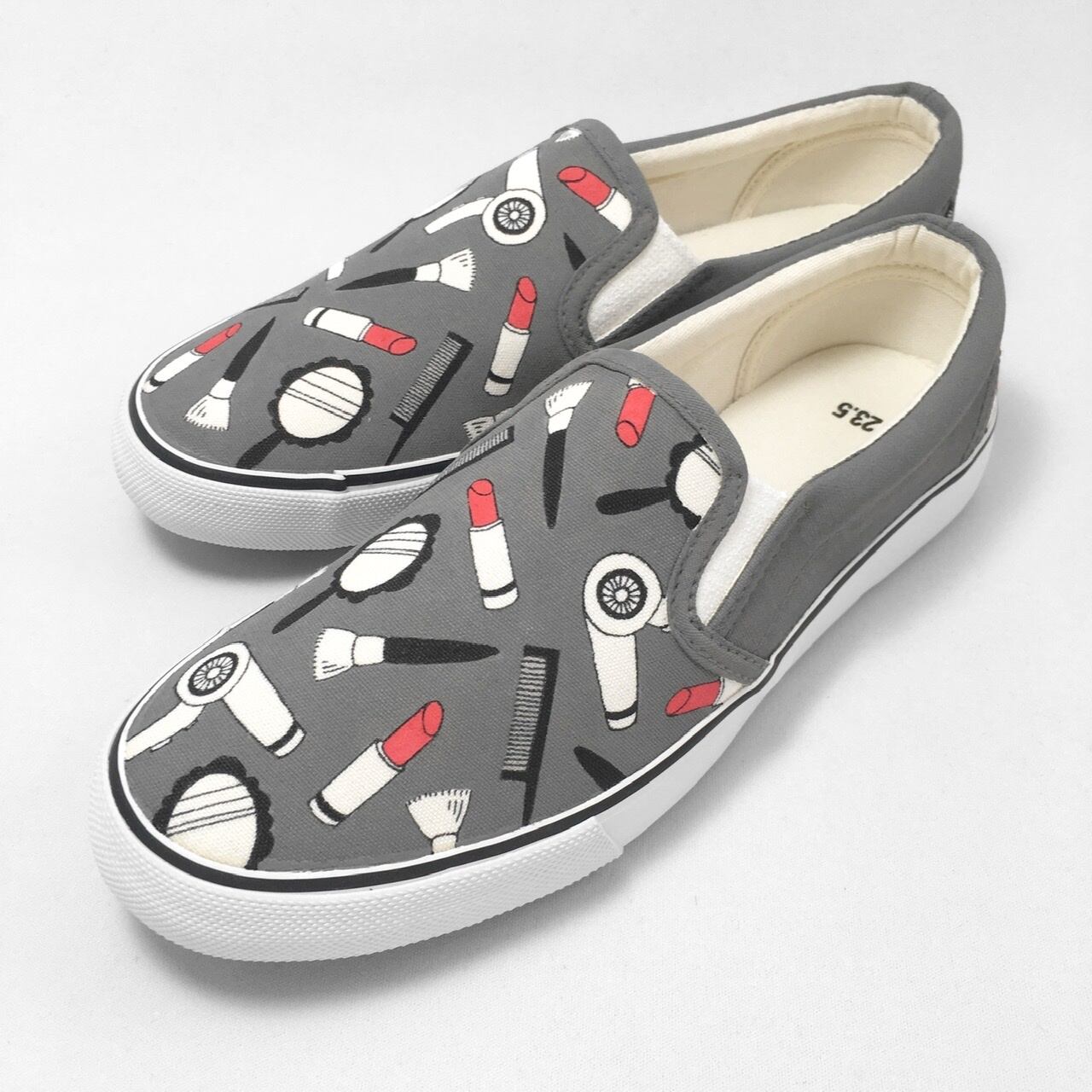 キャンバススリッポンに、手描きで『メイク柄』をペイントしたLACICOオリジナルハンドペイント作品です。