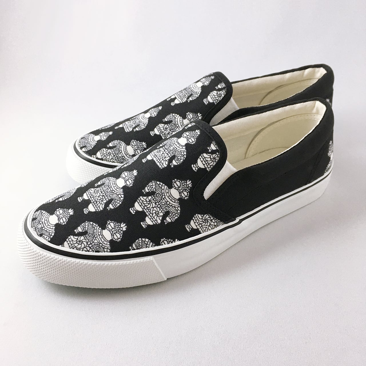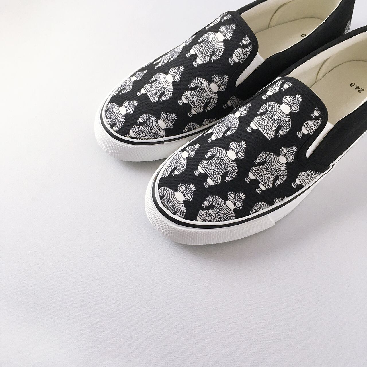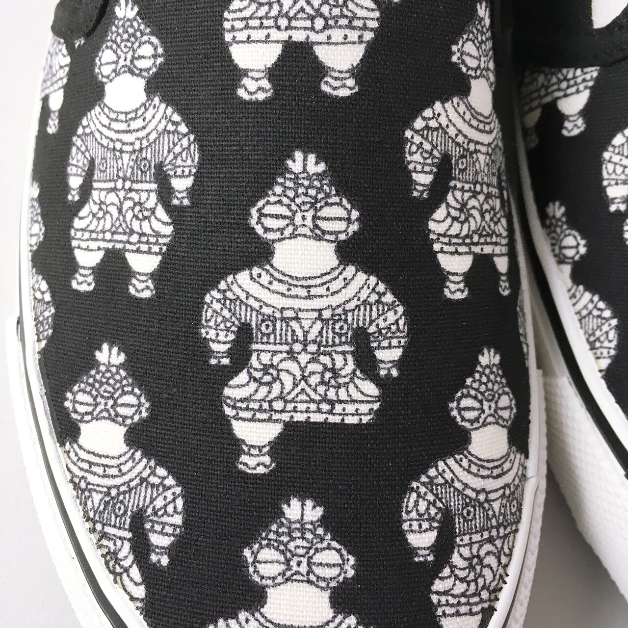 「土偶(どぐう)柄」をスリッポンにハンドペイントした『LACICO(ラシコ)』のオリジナル手描き作品です。