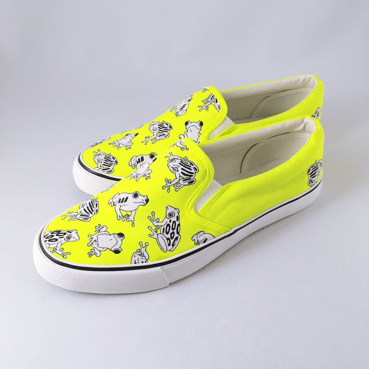 「カエル柄」をスリッポンにハンドペイントしたLACICOオリジナル手描き作品です。